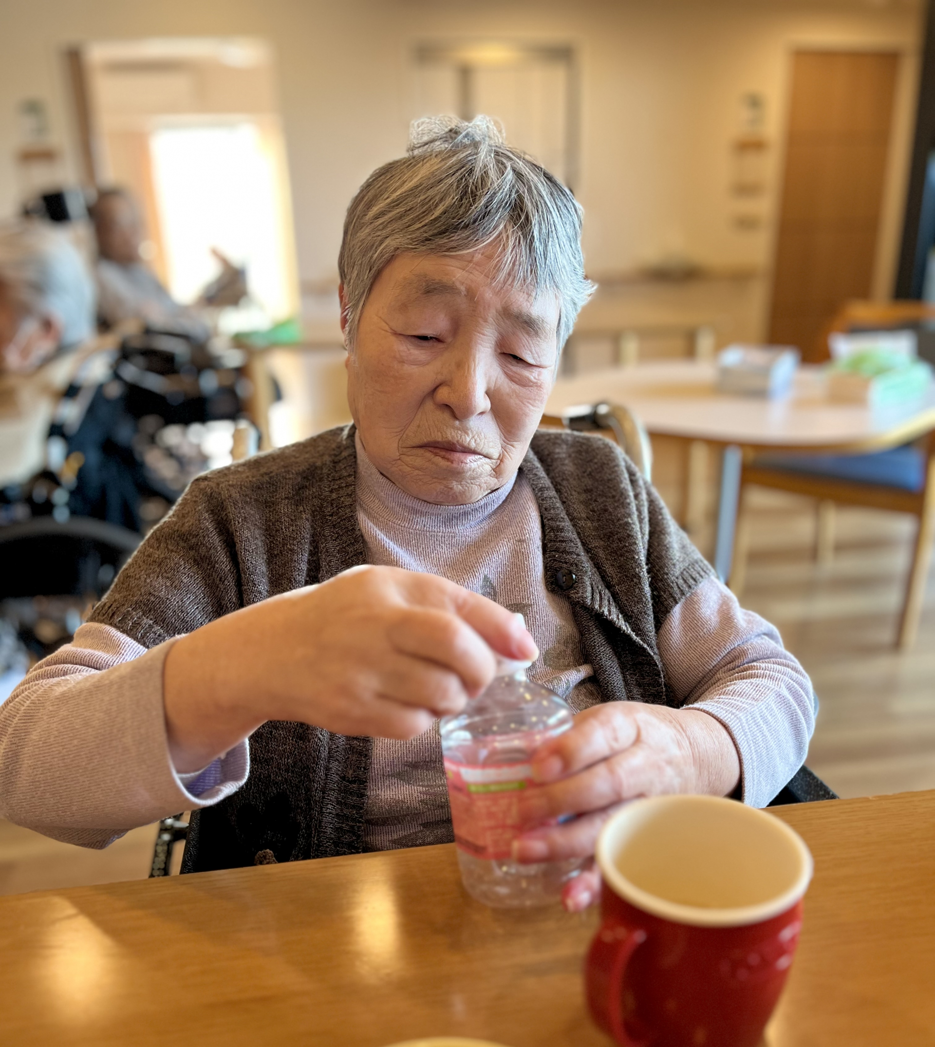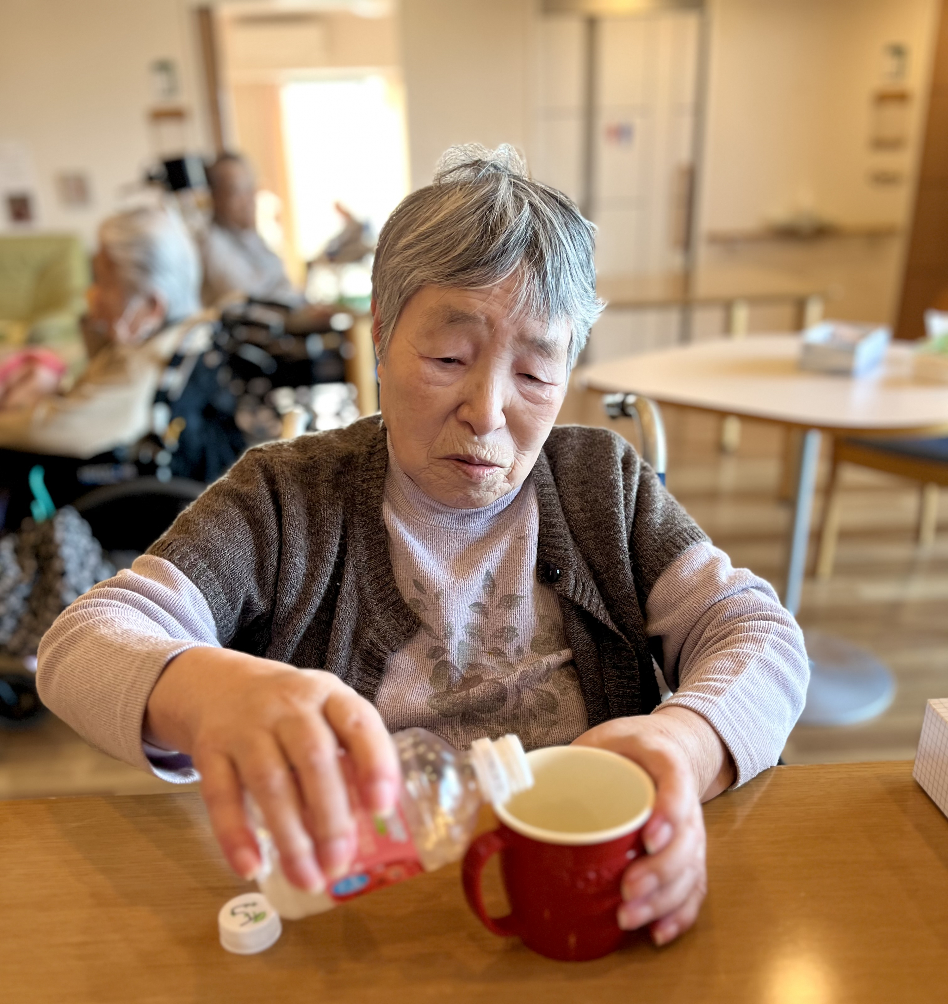 蓋を少し開けて適切量をコップに入れたら、声をかけする少しずつ召し上がってくださいました( *´艸`)