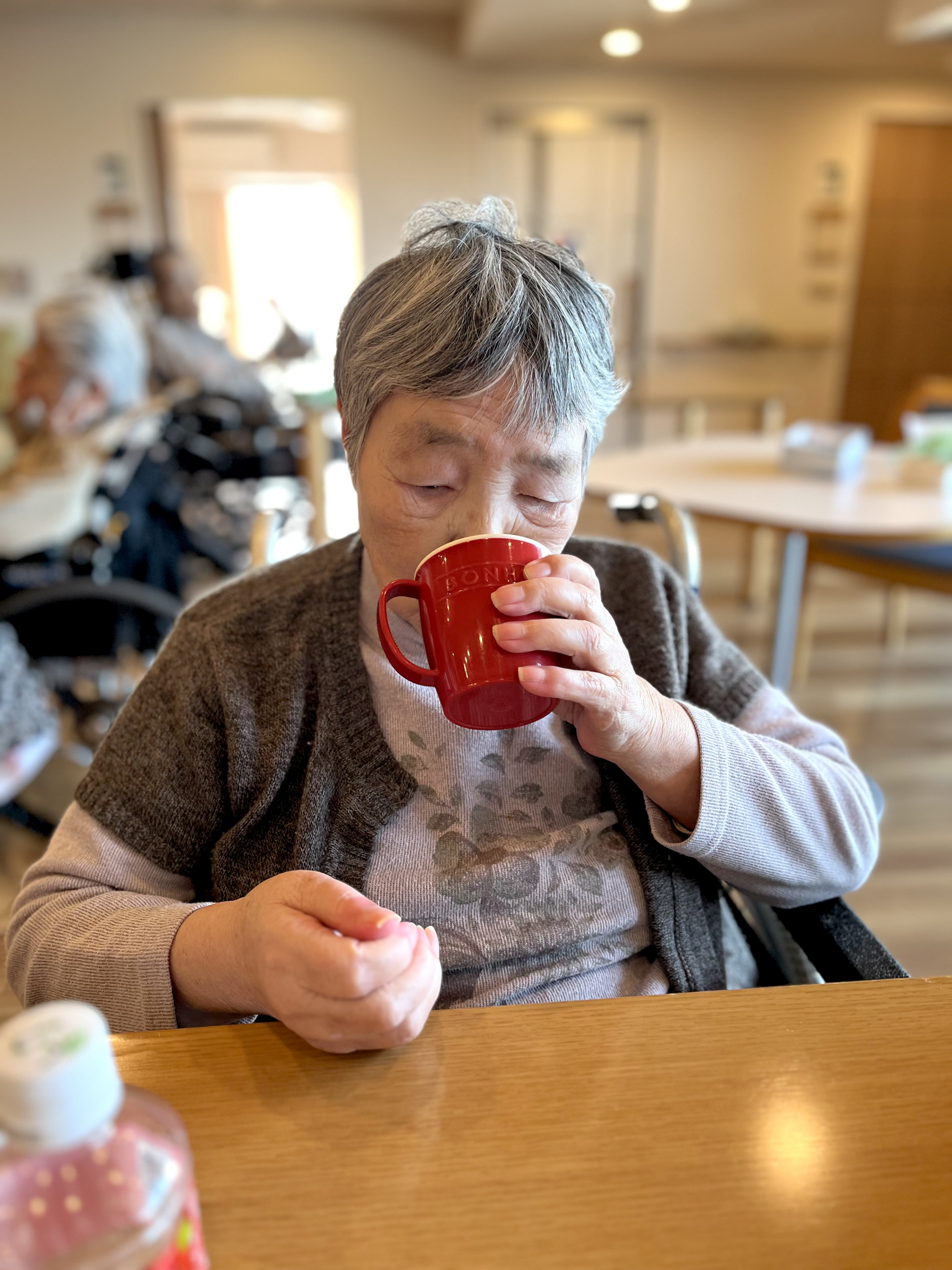 この方はいつもジュースがあまり進まないですが、ご家族様が持参したと伝えるとすごく喜んでいました( *´艸`)