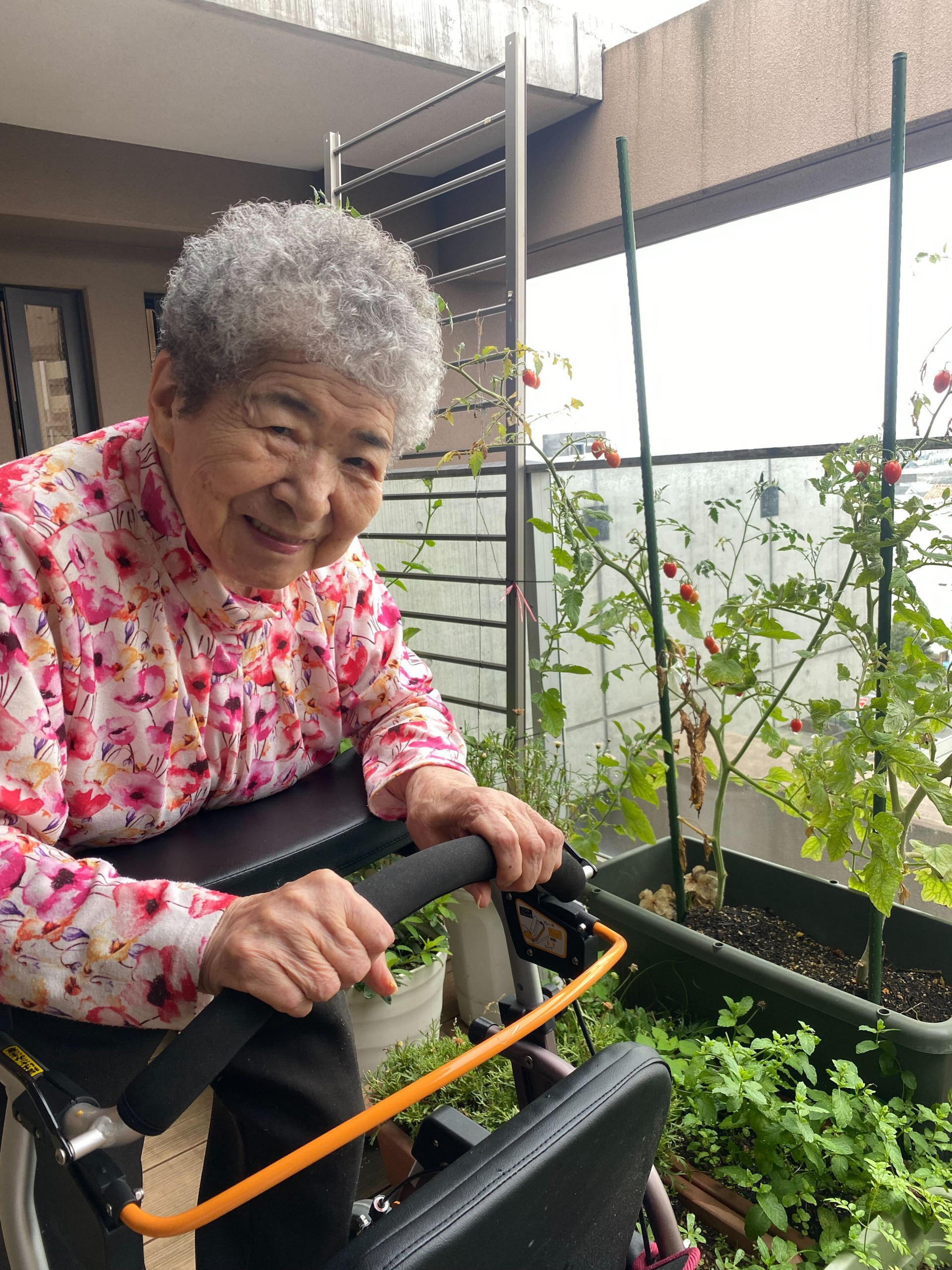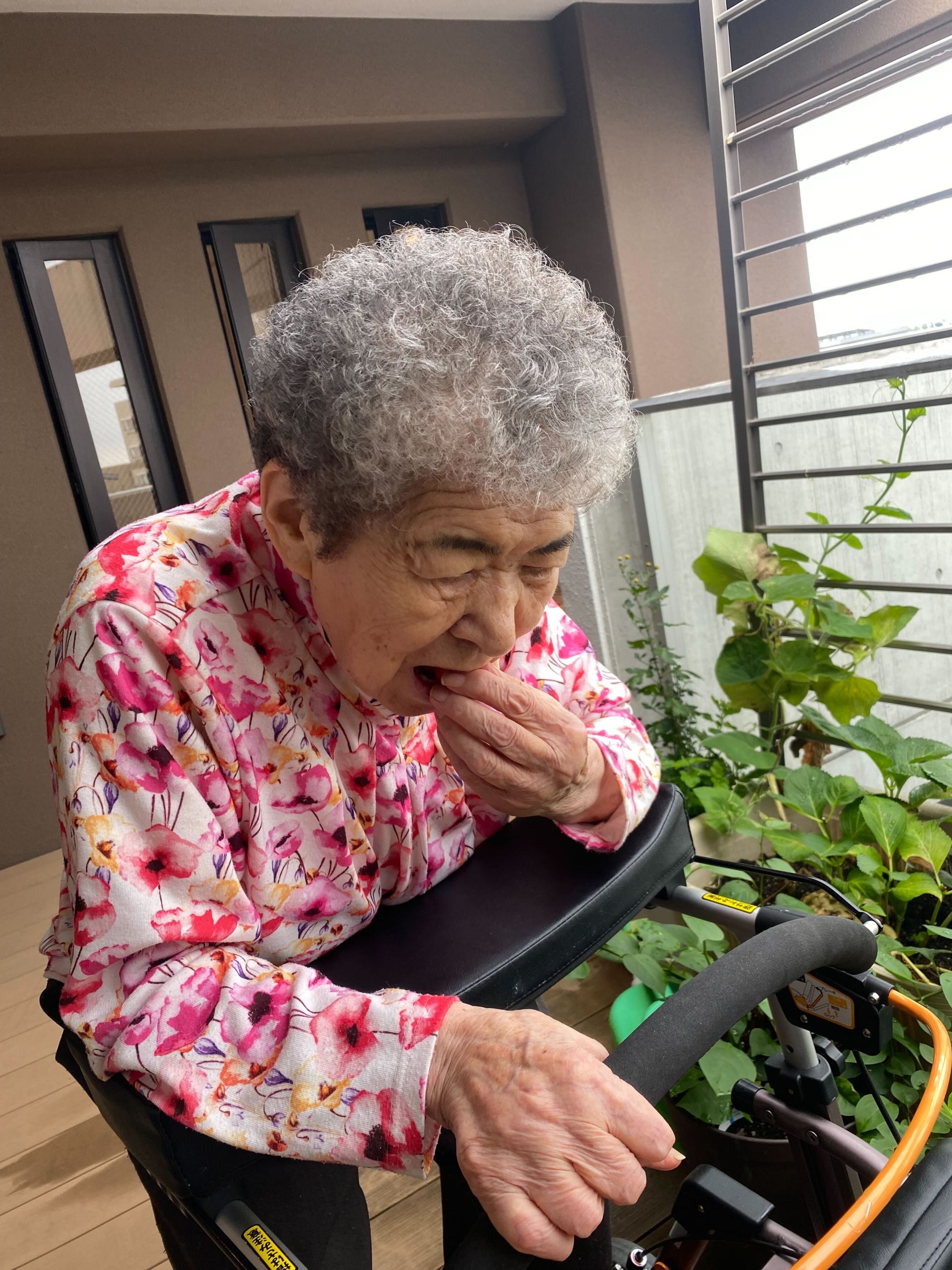 歩行練習の時に、ベランダのとトマトを収穫し、楽しんで召し上りました。