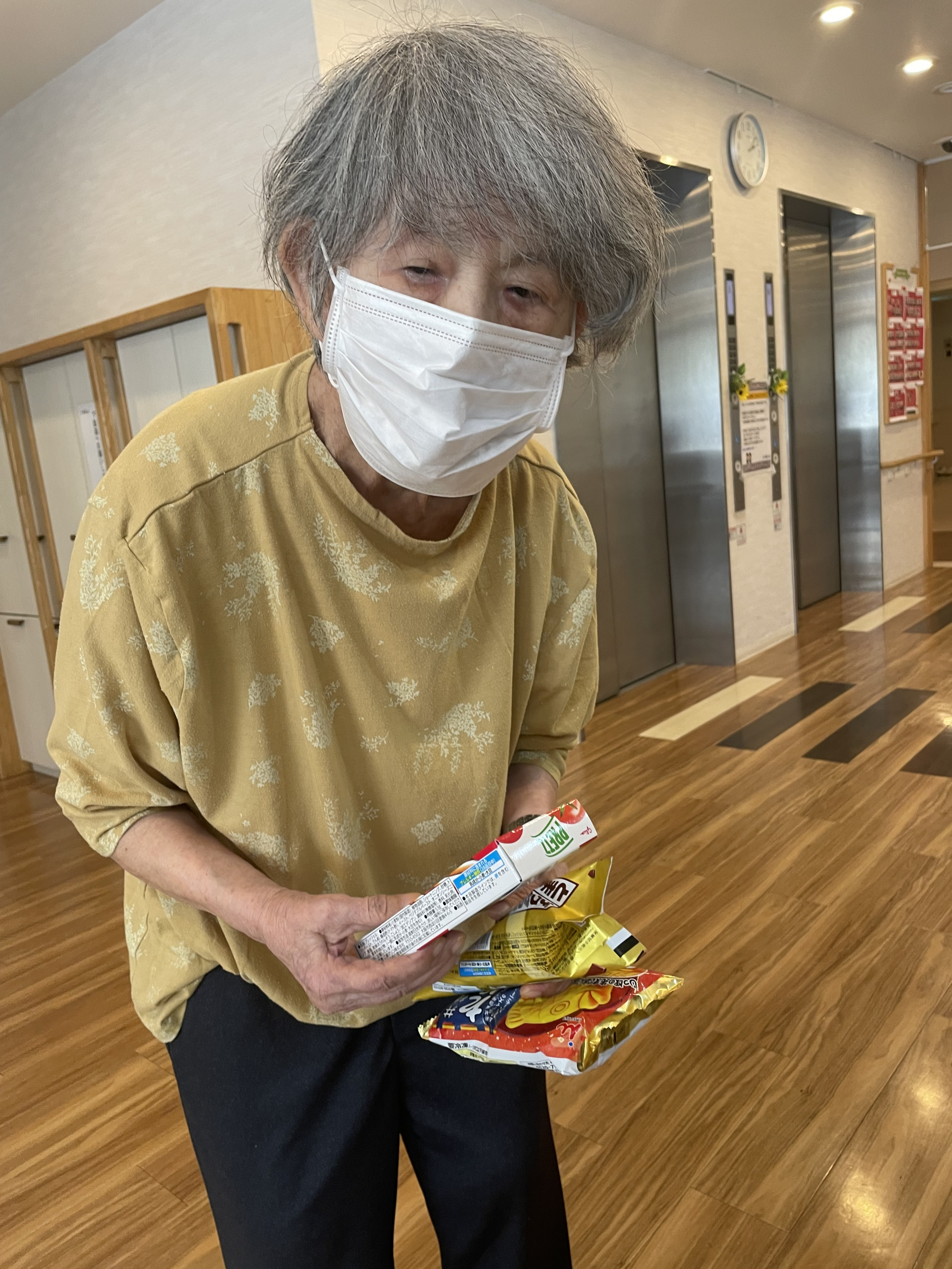 お菓子やアイスはたくさん種類がありますが、一階に着くとすぐに選ばれ、ご自身で手に取っていまいた(^^♪