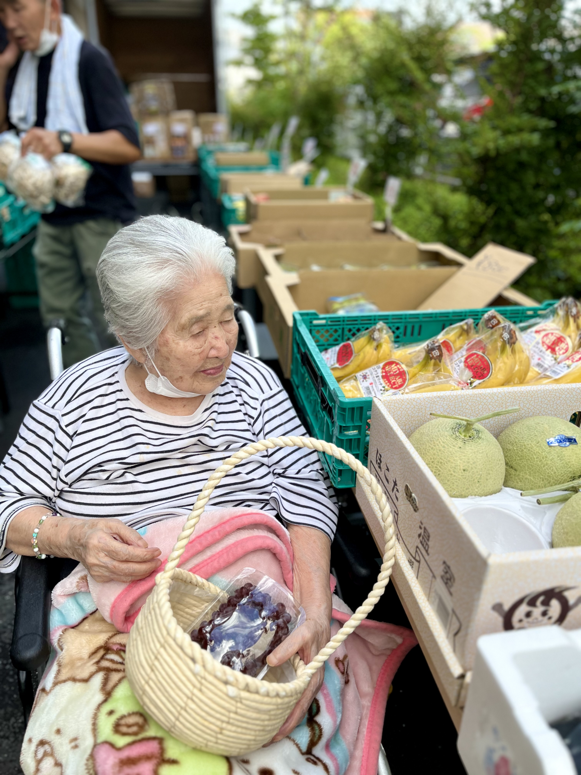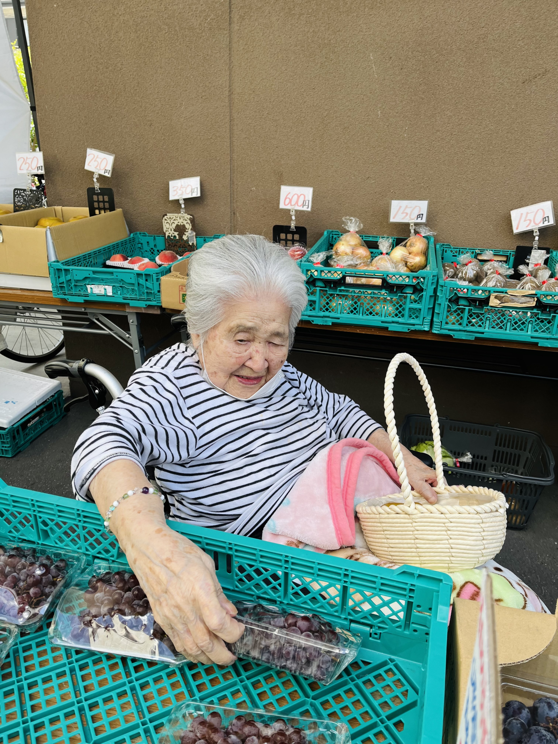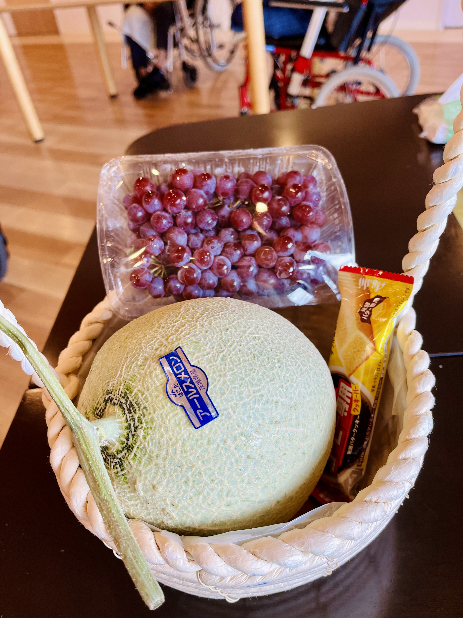 前日誘うと利用者様の要望によりミニトマトを買う予定ですが、なかった為、代わりにメロンやブドウを買いました(*´ω`)