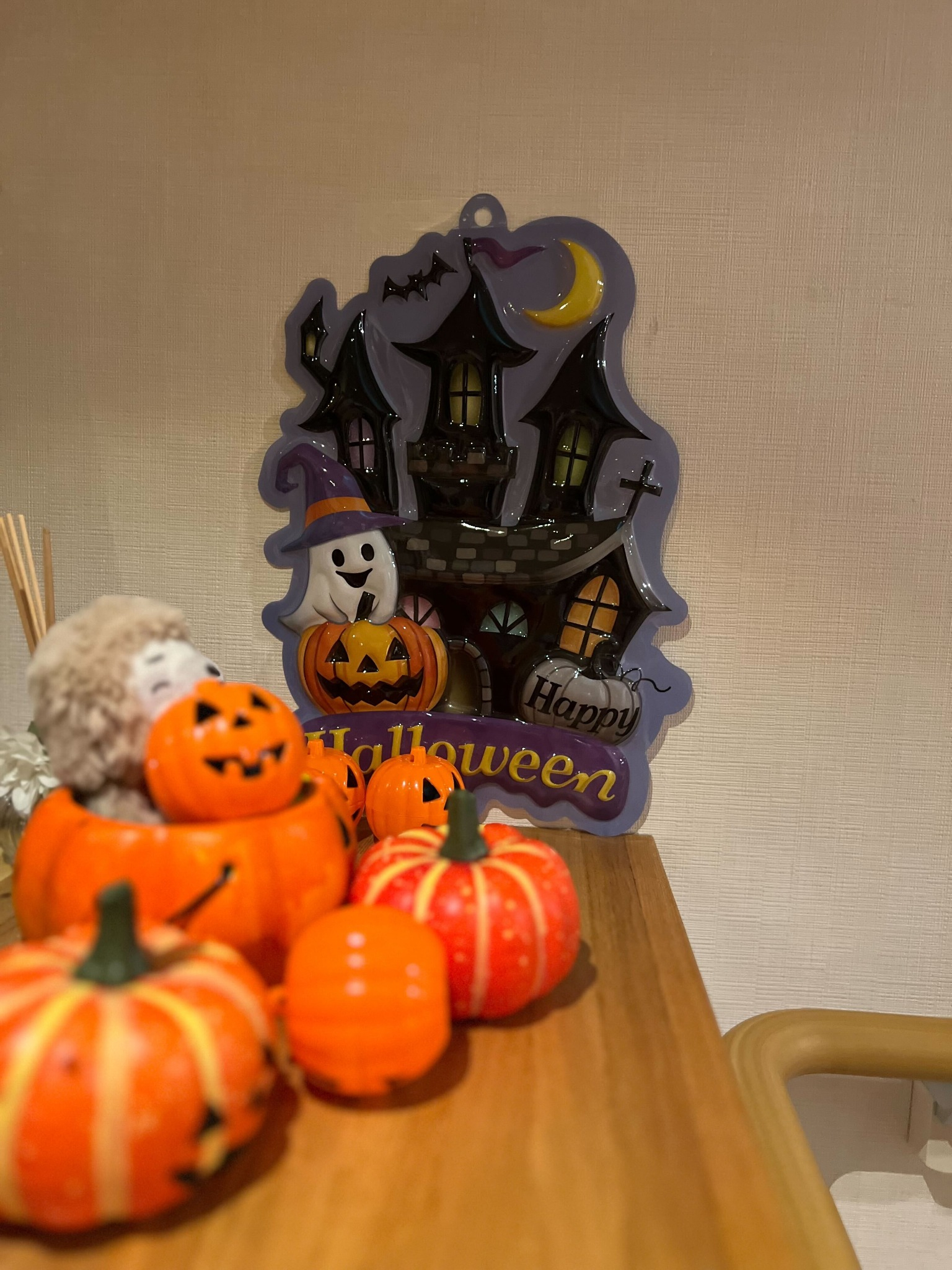 オレンジ色のカボチャやおばけ、コウモリなどの可愛らしいデコレーションが、