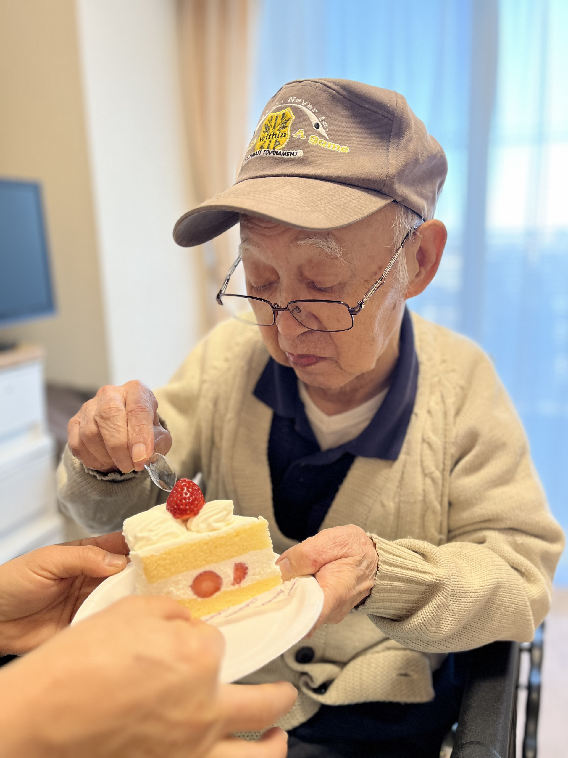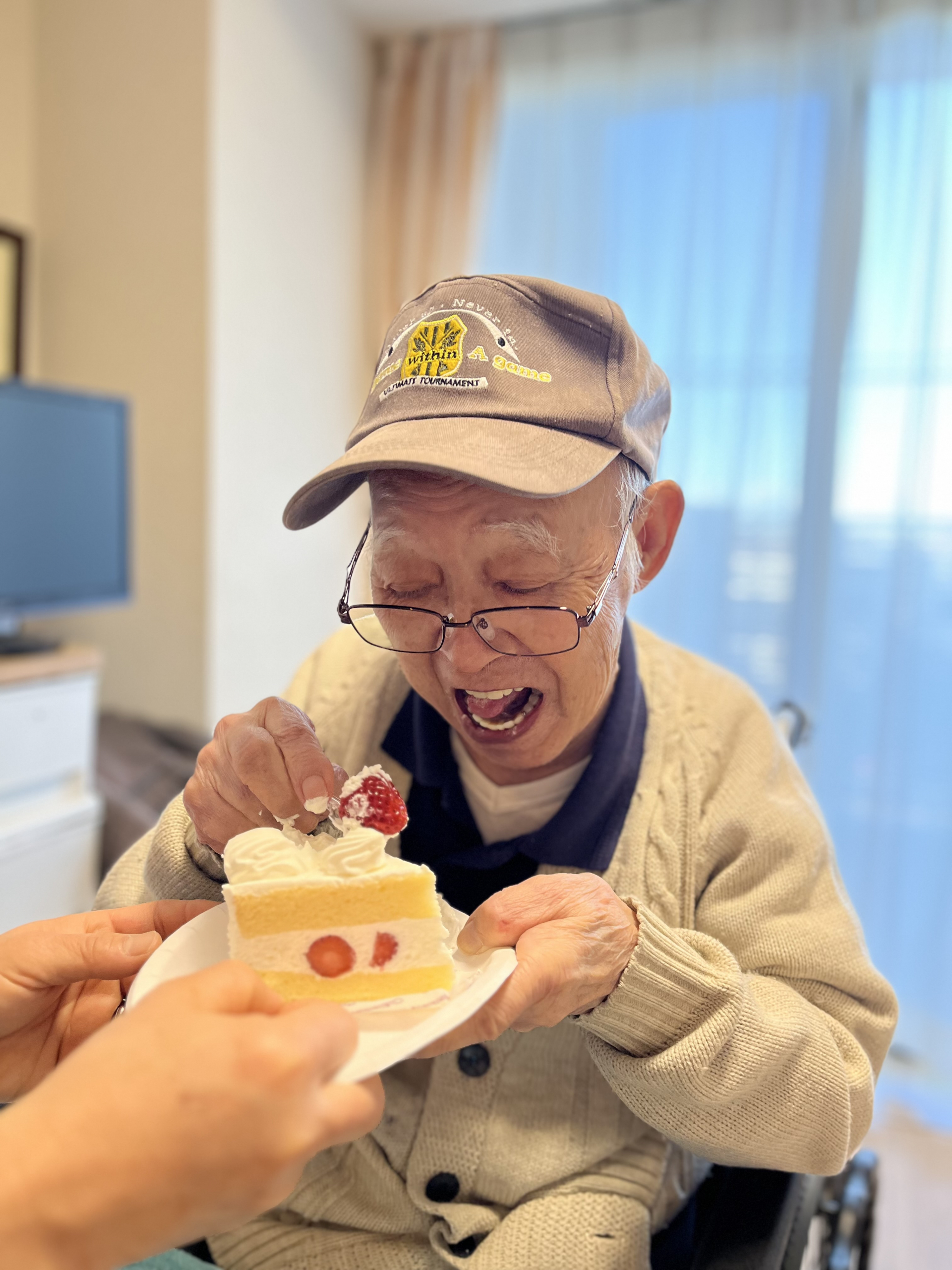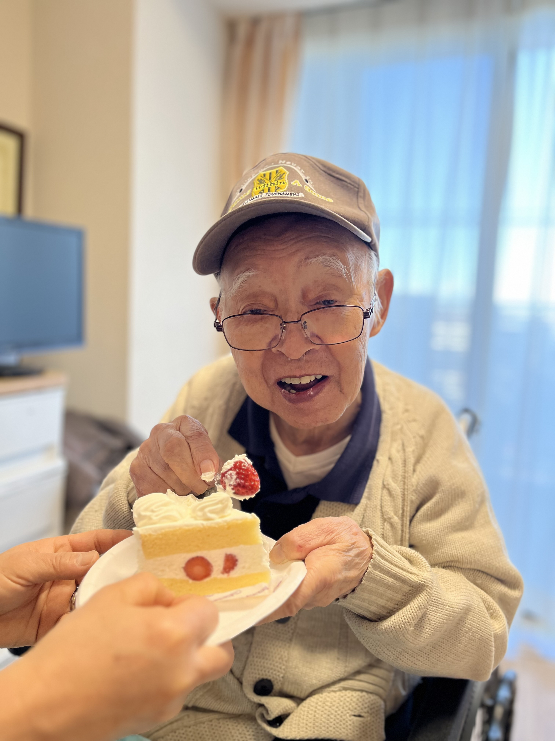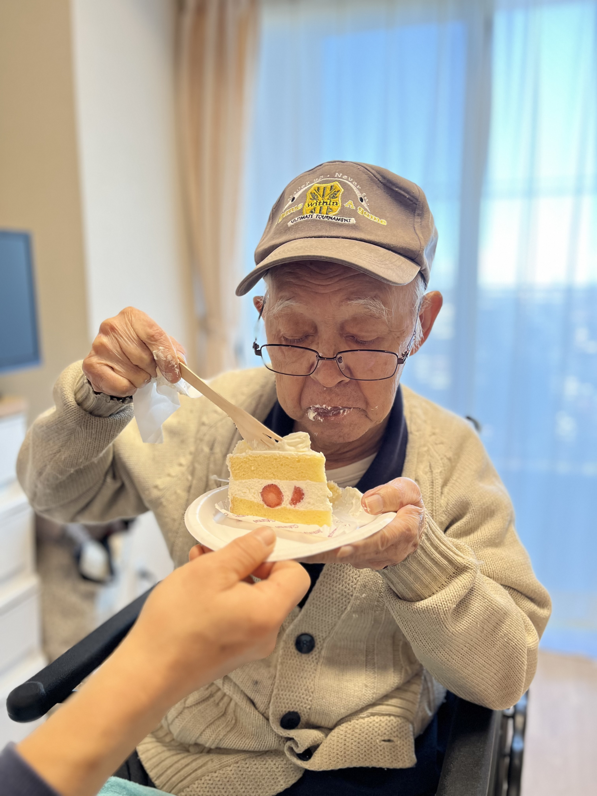 先日居室でご家族様が持参したケーキを召し上がりました。その様子をお伝えたいと思います(^^♪