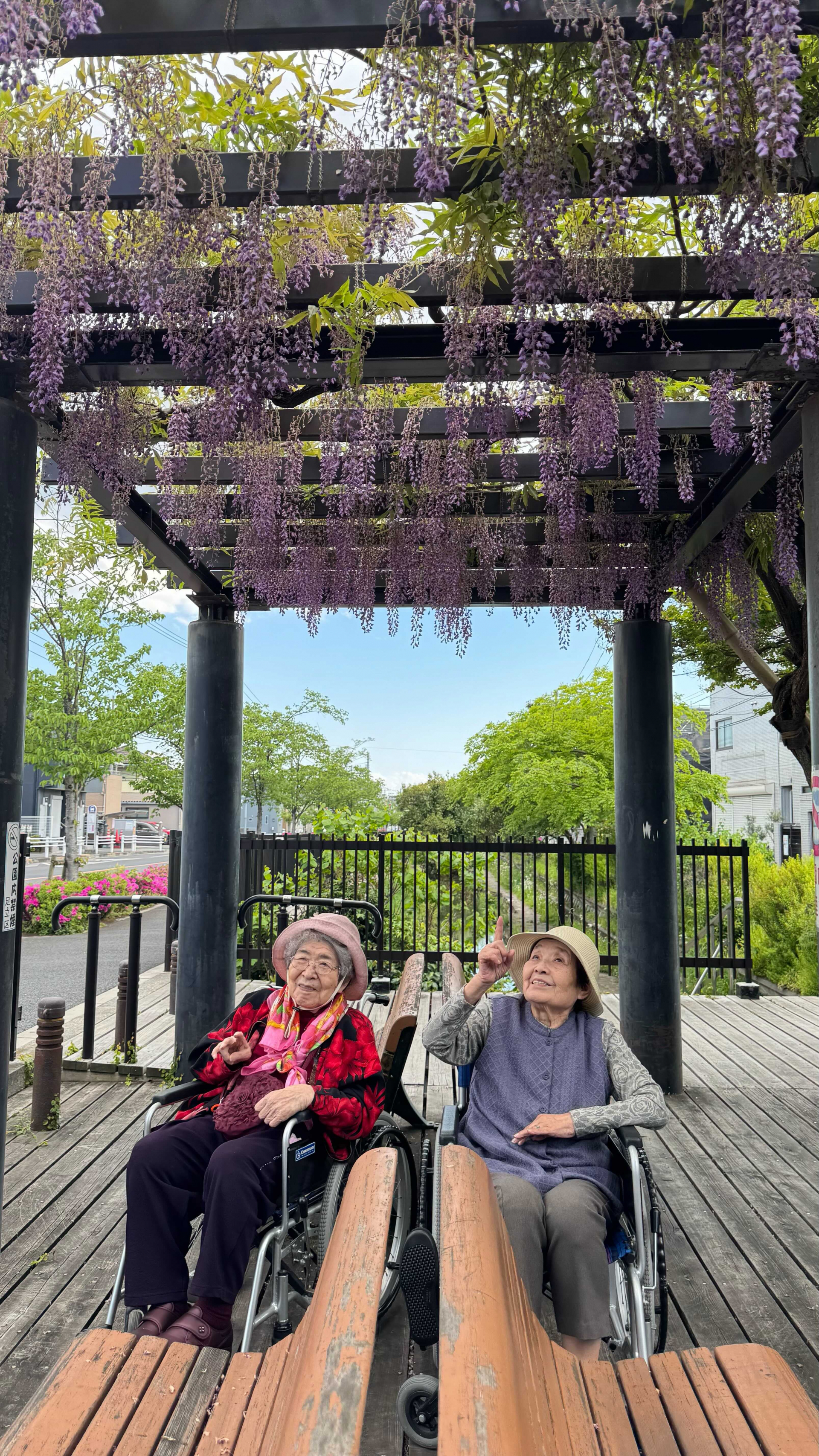 お天気にも恵まれ、外出日和の一日でした。道沿いに咲き誇る色とりどりのツツジを眺めながら、皆様と一緒にお散歩へ。