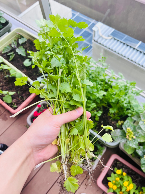 かわいい犬を抱っこし、笑顔で過ごされています。