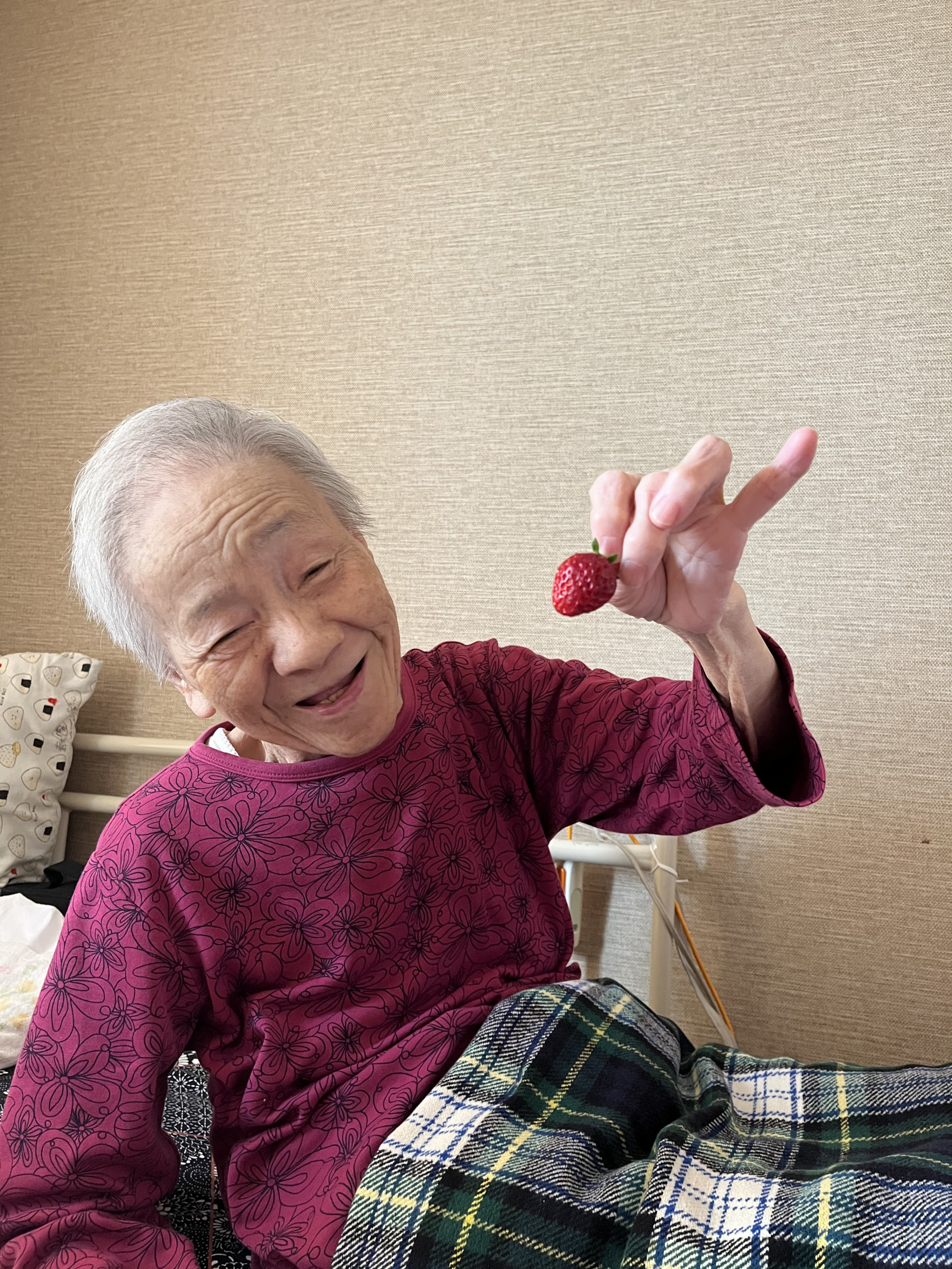 利用者様が4北のベランダから収穫したイチゴを召し上がりました。