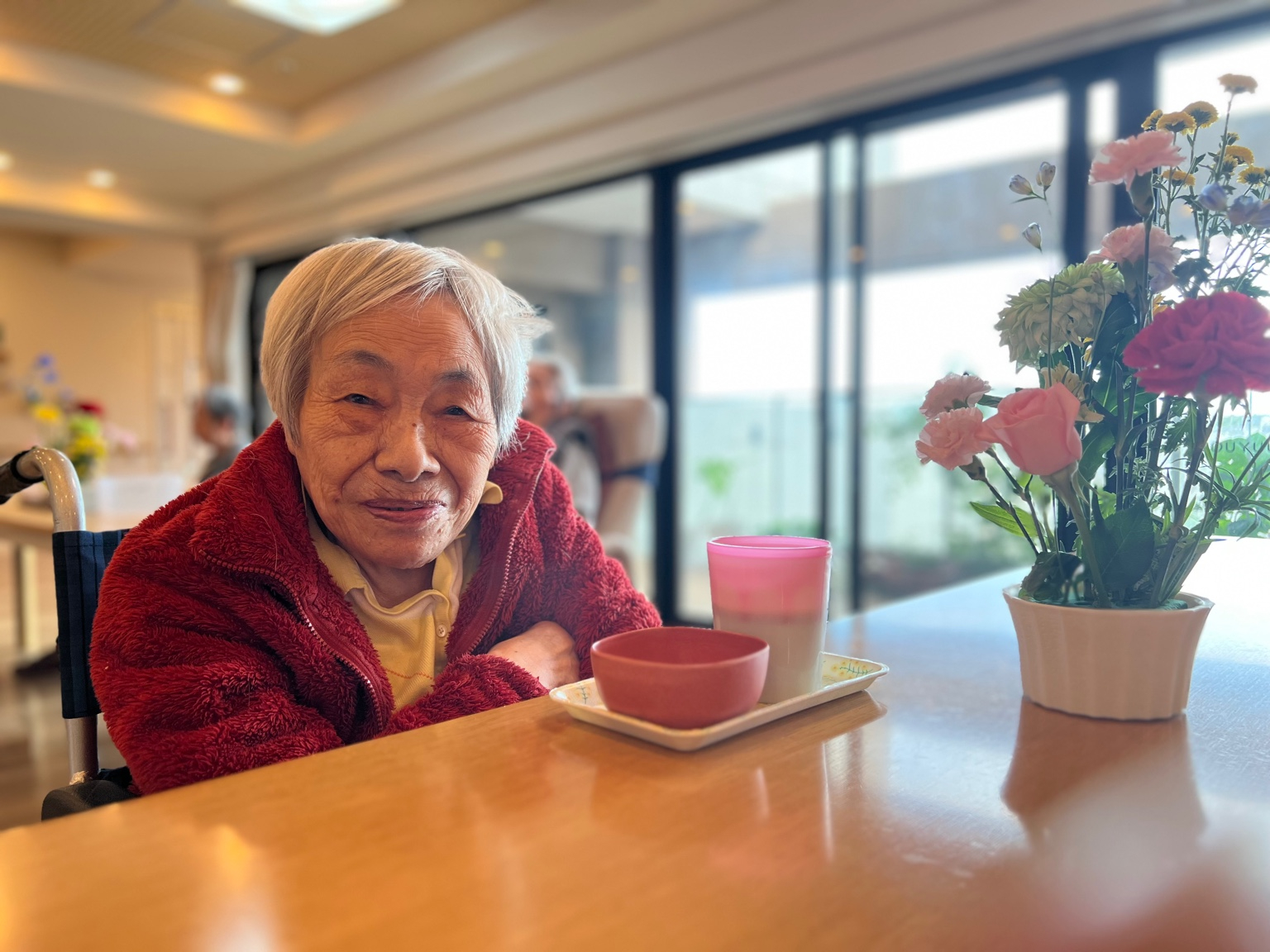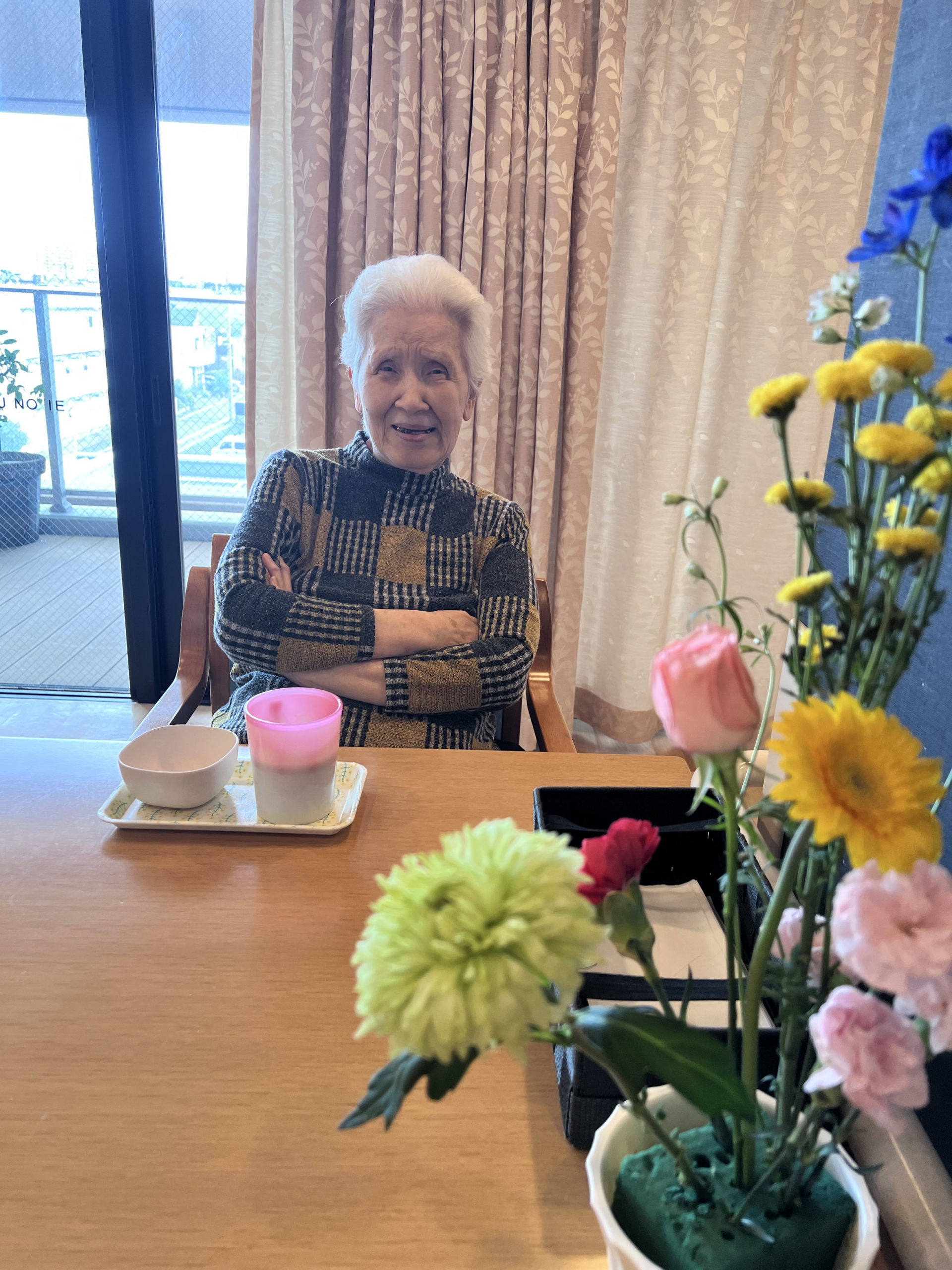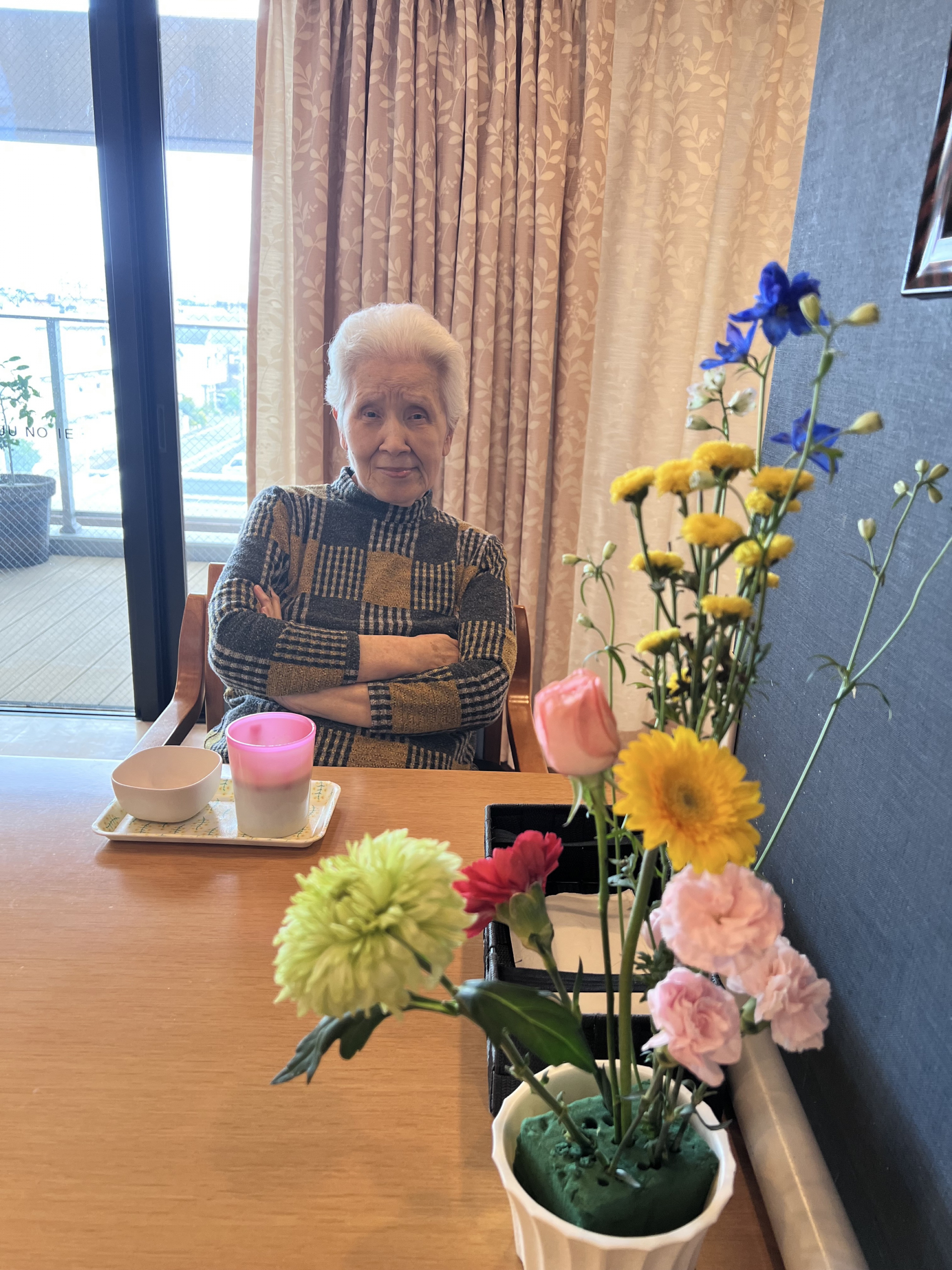 フラワーアレンジメントの後、おやつの時間を設けました。