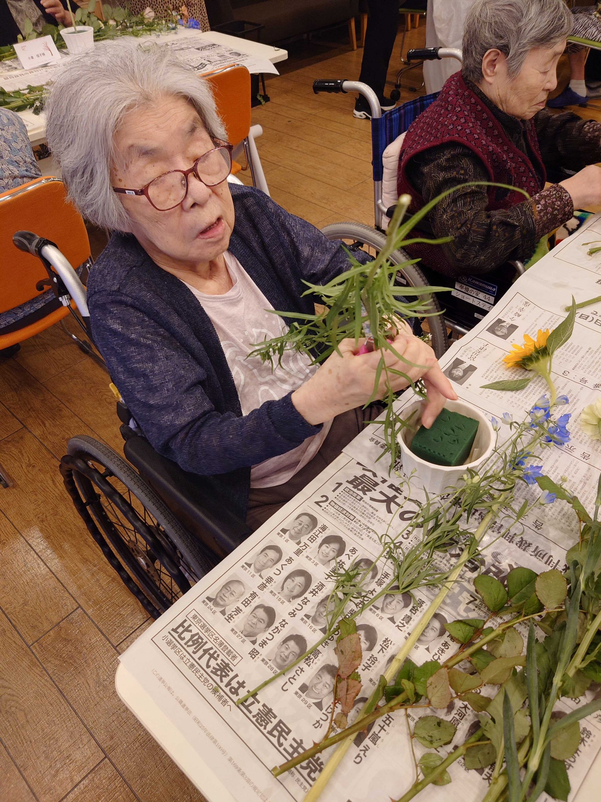 奉優の家では毎月1回ご希望の利用者様とフラワーアレンジメント教室を開催しております。