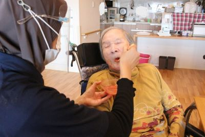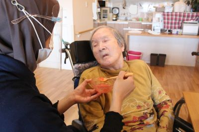 食べやすいようにすりおろしたフルーツを提供し、ご利用者様は笑顔で楽しまれていました。