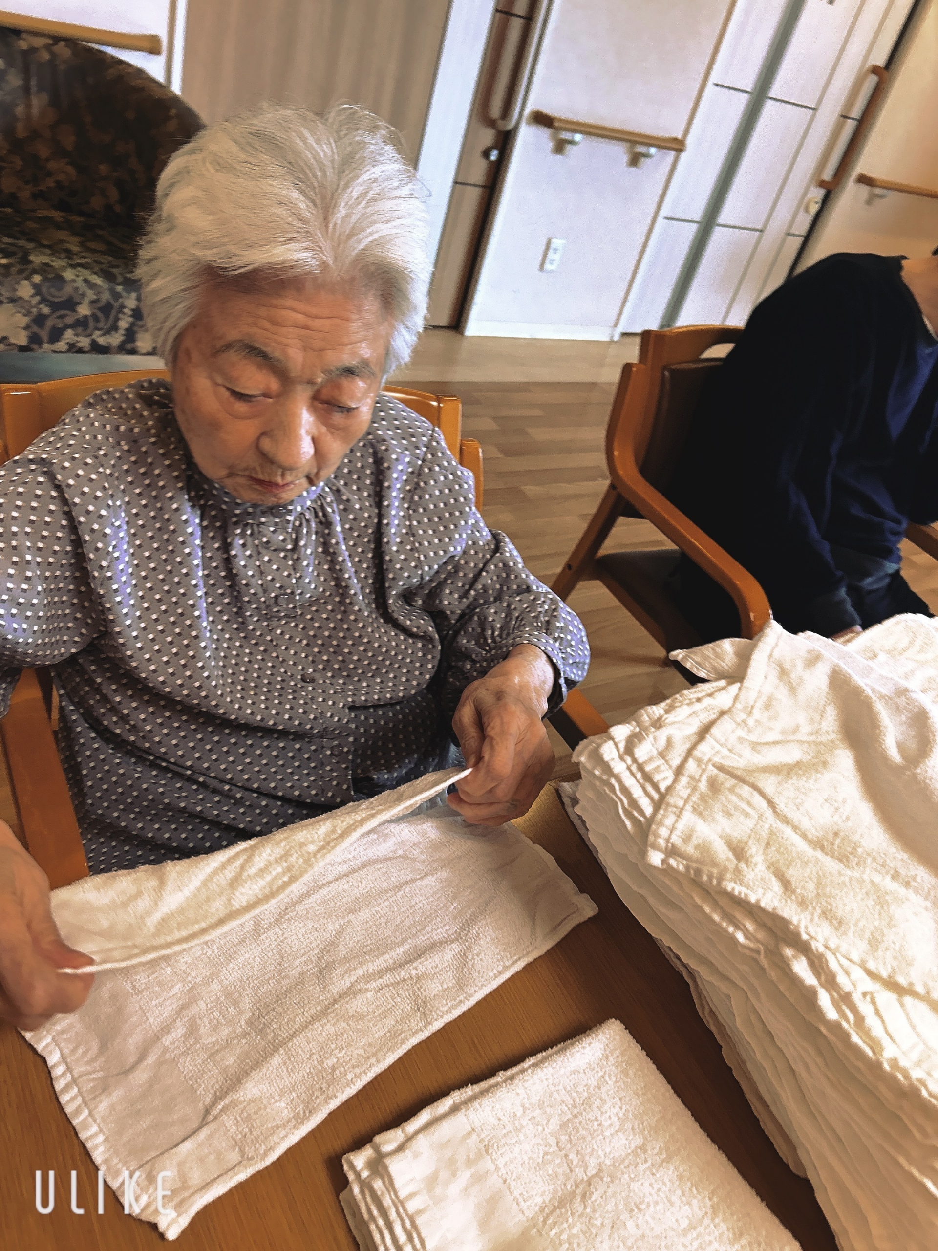 お食事の後は、おしぼりたたみを手伝ってくださってます♪