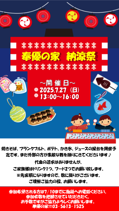 当日ご参加されるご家族様は、参加人数を奉優の家までご連絡をお願いします♪