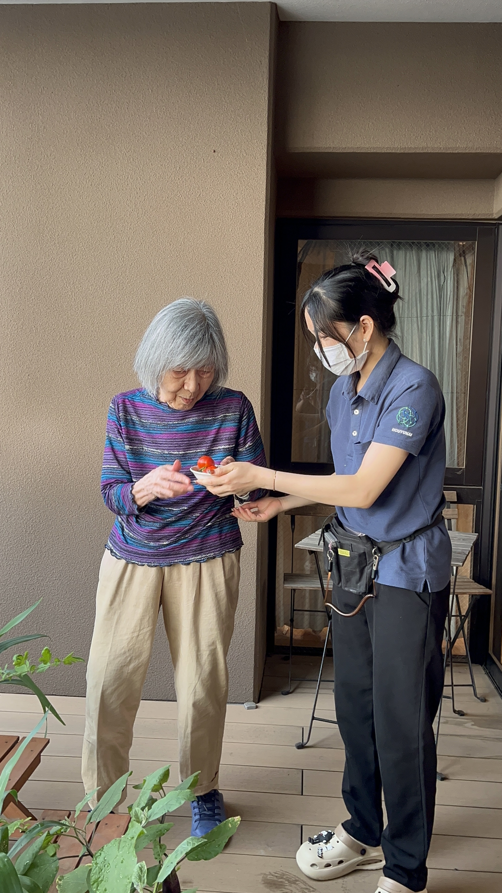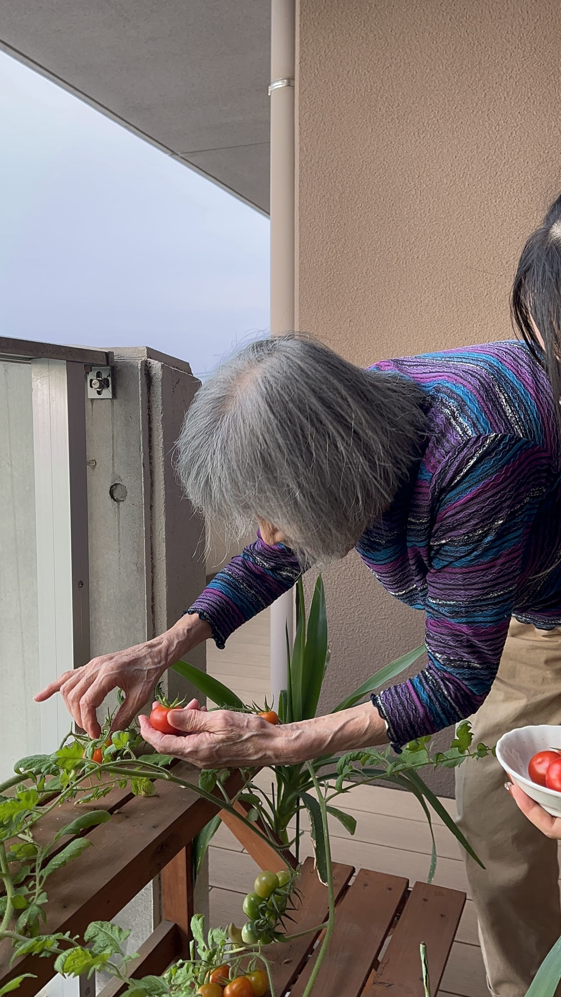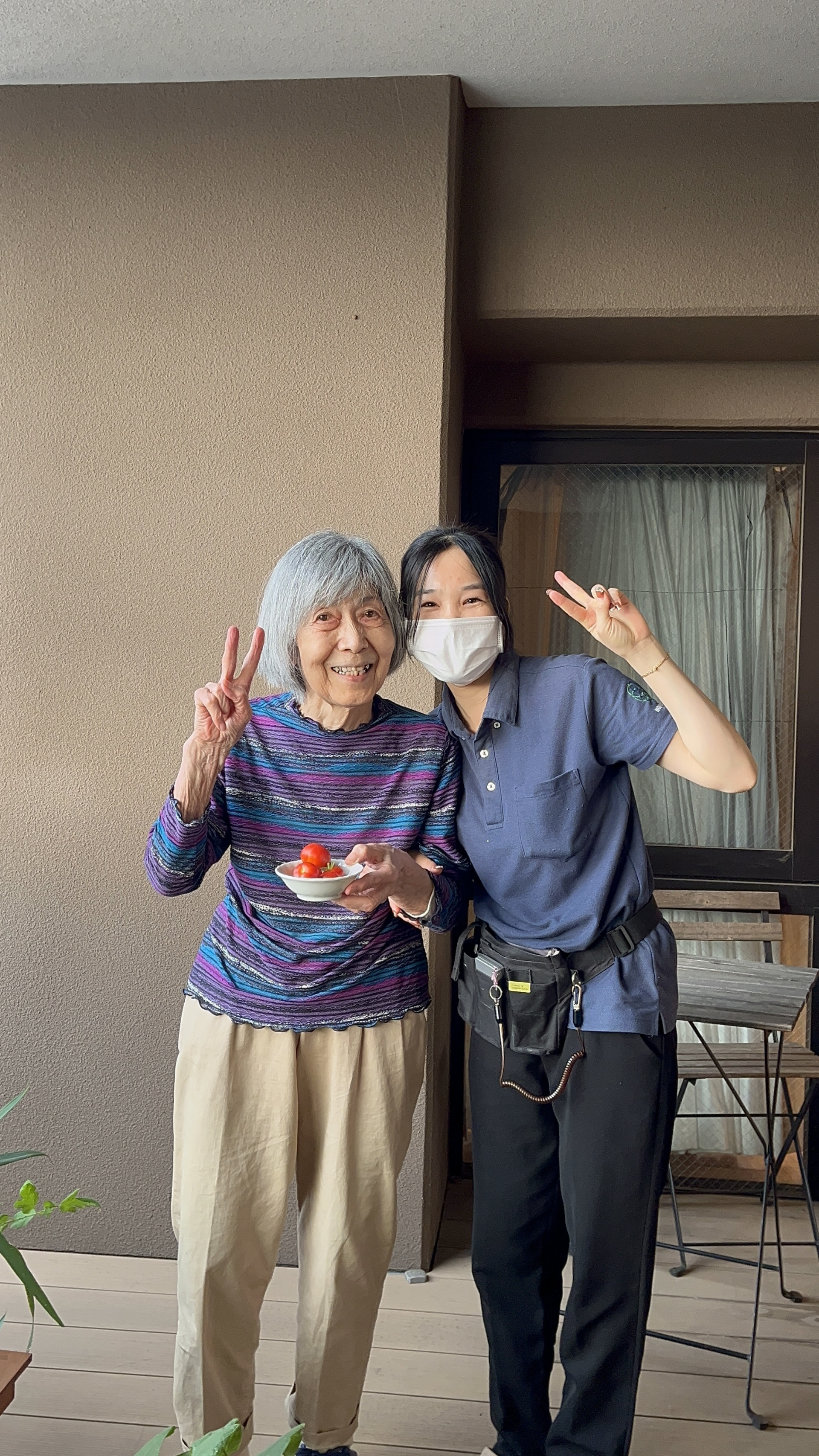 この間ベランダへご利用者様と一緒にミニトマトを収穫に行きました(*´ω`)