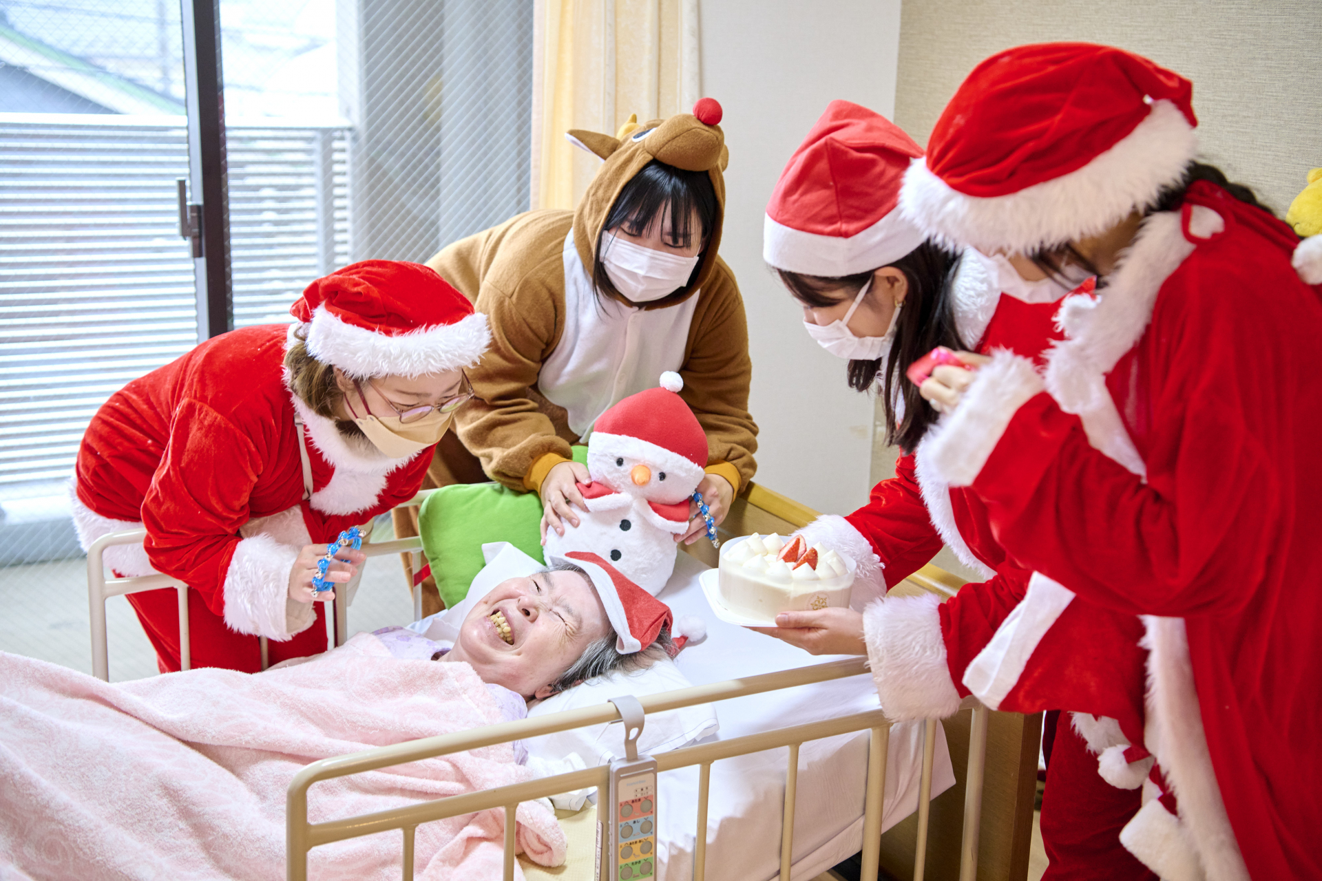 少しでも皆さんに「クリスマス」を楽しんでいただきたいと思い、一生懸命に企画と準備を行いました。喜んでくれるかな?と最初は不安もありましたが、きっとこの笑顔が答えなんだと思います。そしてご覧ください、職員のこの笑顔。誰よりも楽しんでいたのは私をはじめとする職員かもしれません(笑)