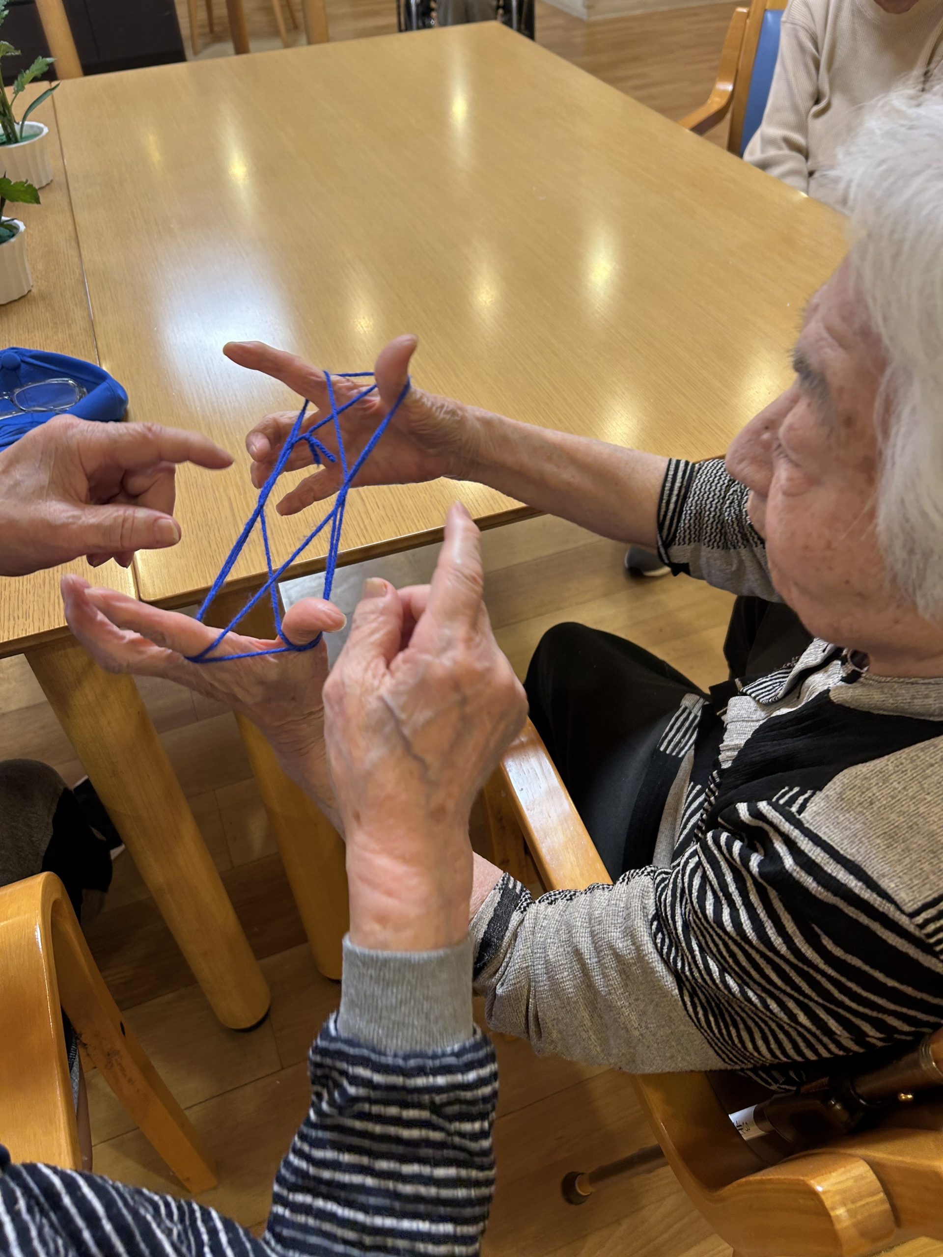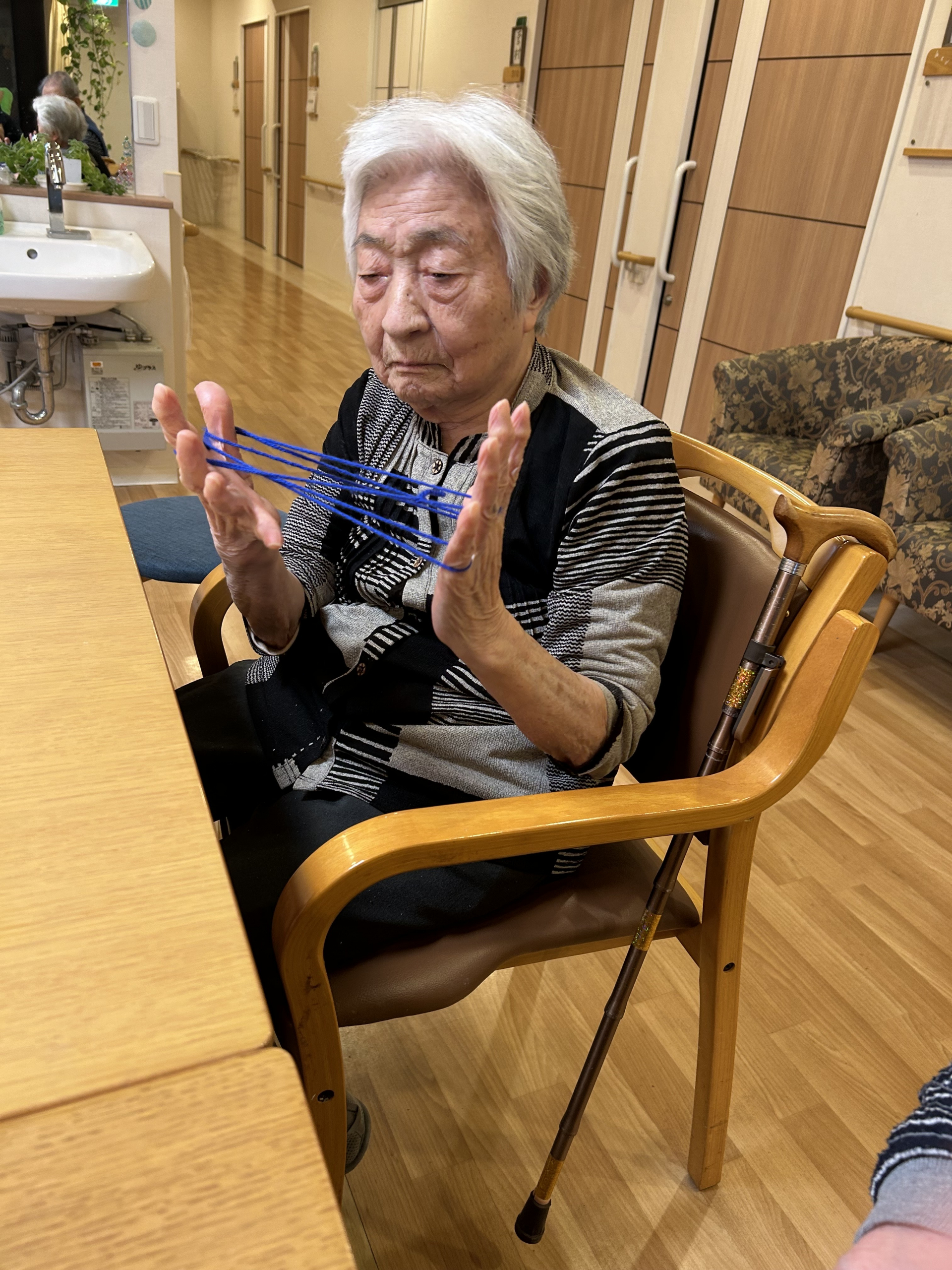 前回もお知らせしましたが、今日もあやとりでお遊び中。