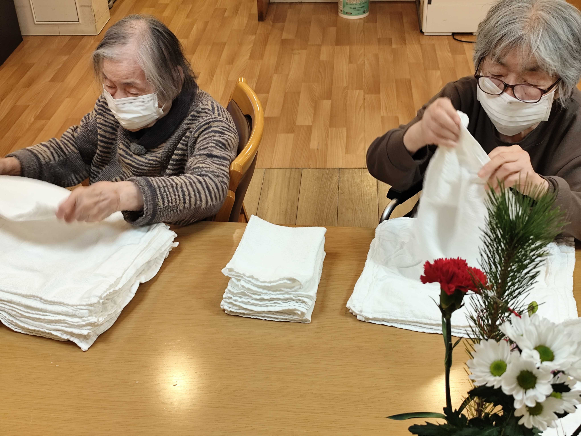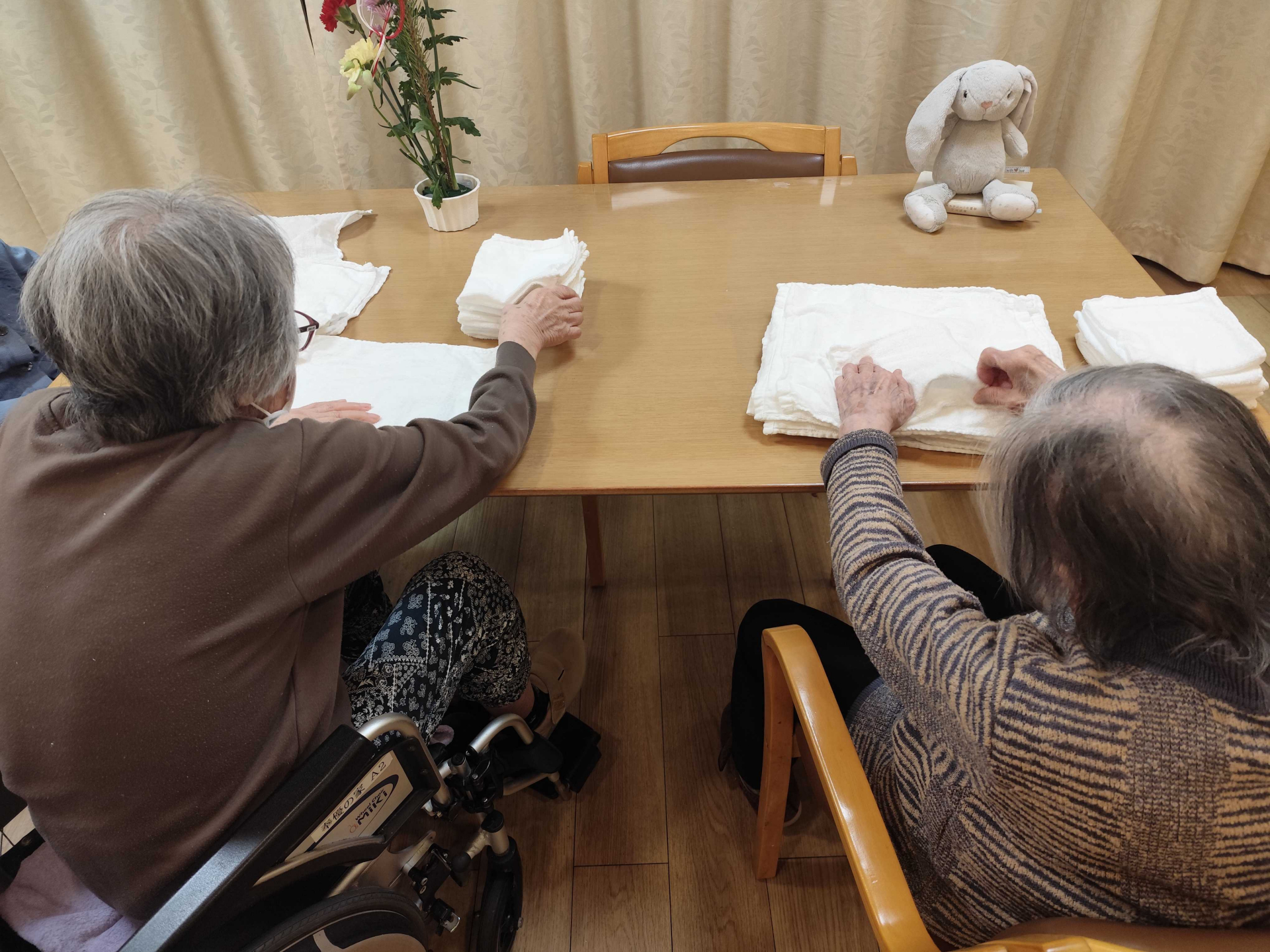 タオルをたたんだり、カーテンを閉めたりします。。こうした小さなお手伝いが集まって、穏やかな時間が静かに流れていきます。