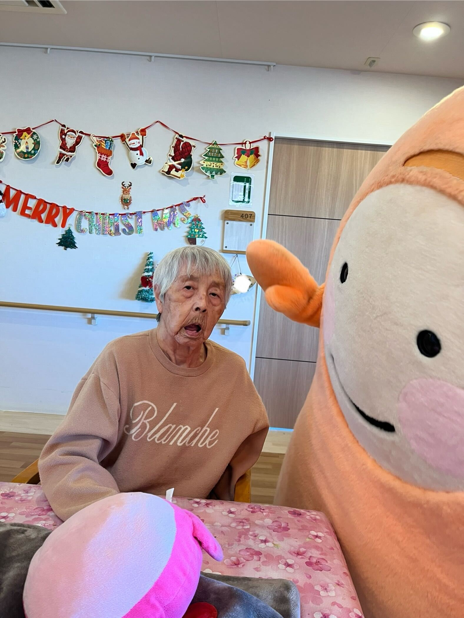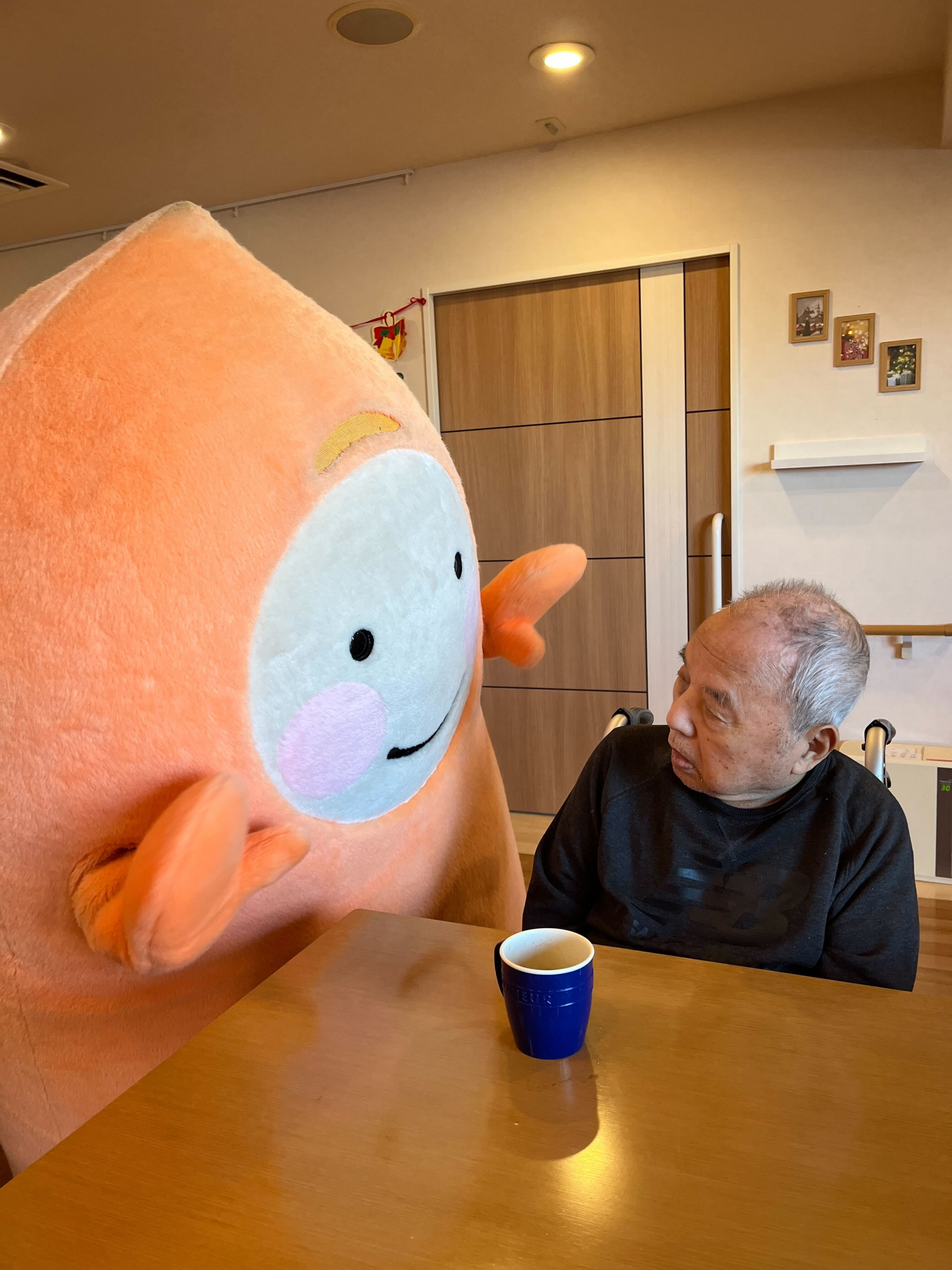 先日ユニットにびゅうぼうが来て利用者様の方に声をかけました(^_-)-☆