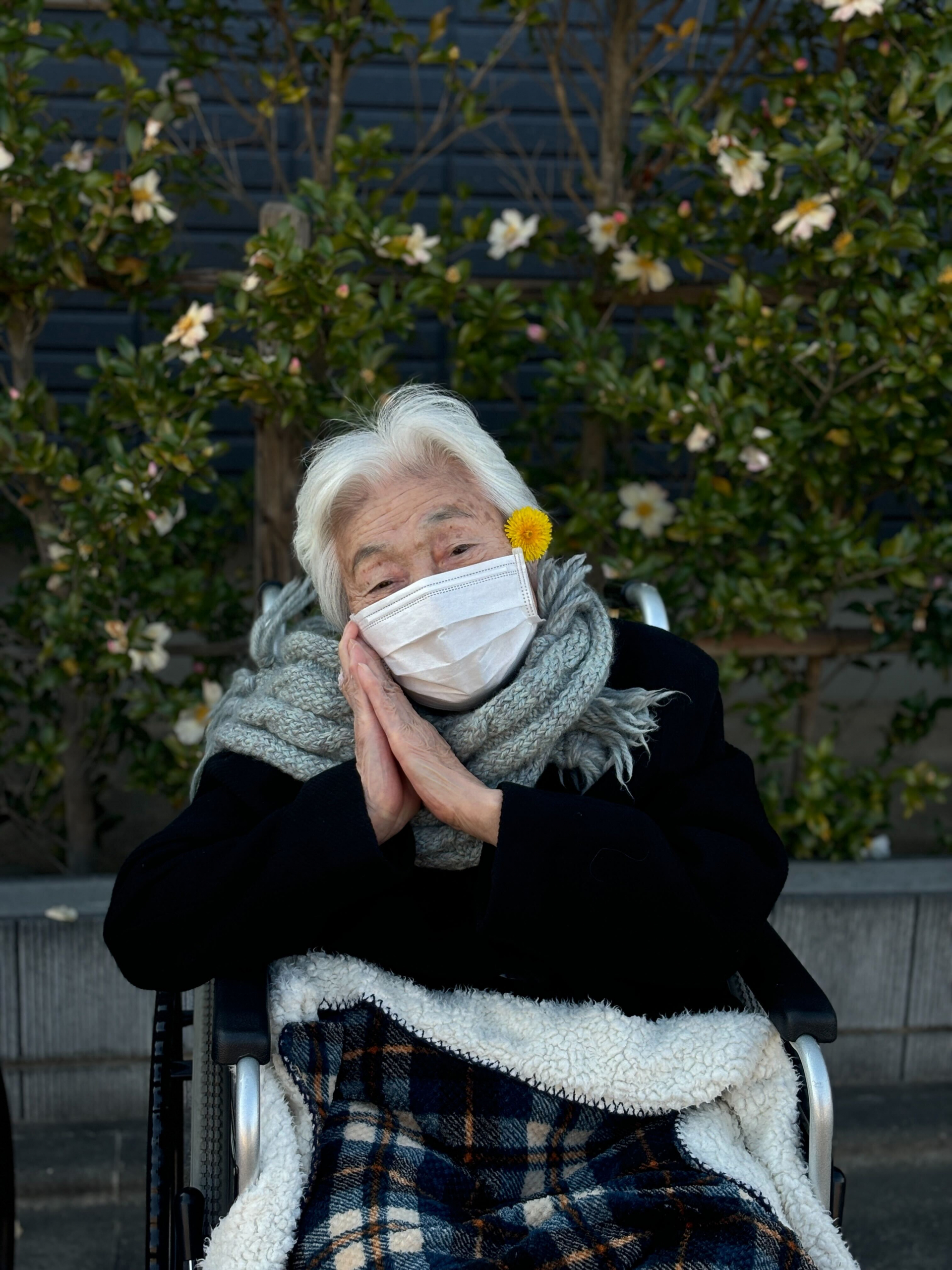 「ほら、あの花は美しいな~」一緒に写真を撮りましょう♪1,2,3パシャリ😊