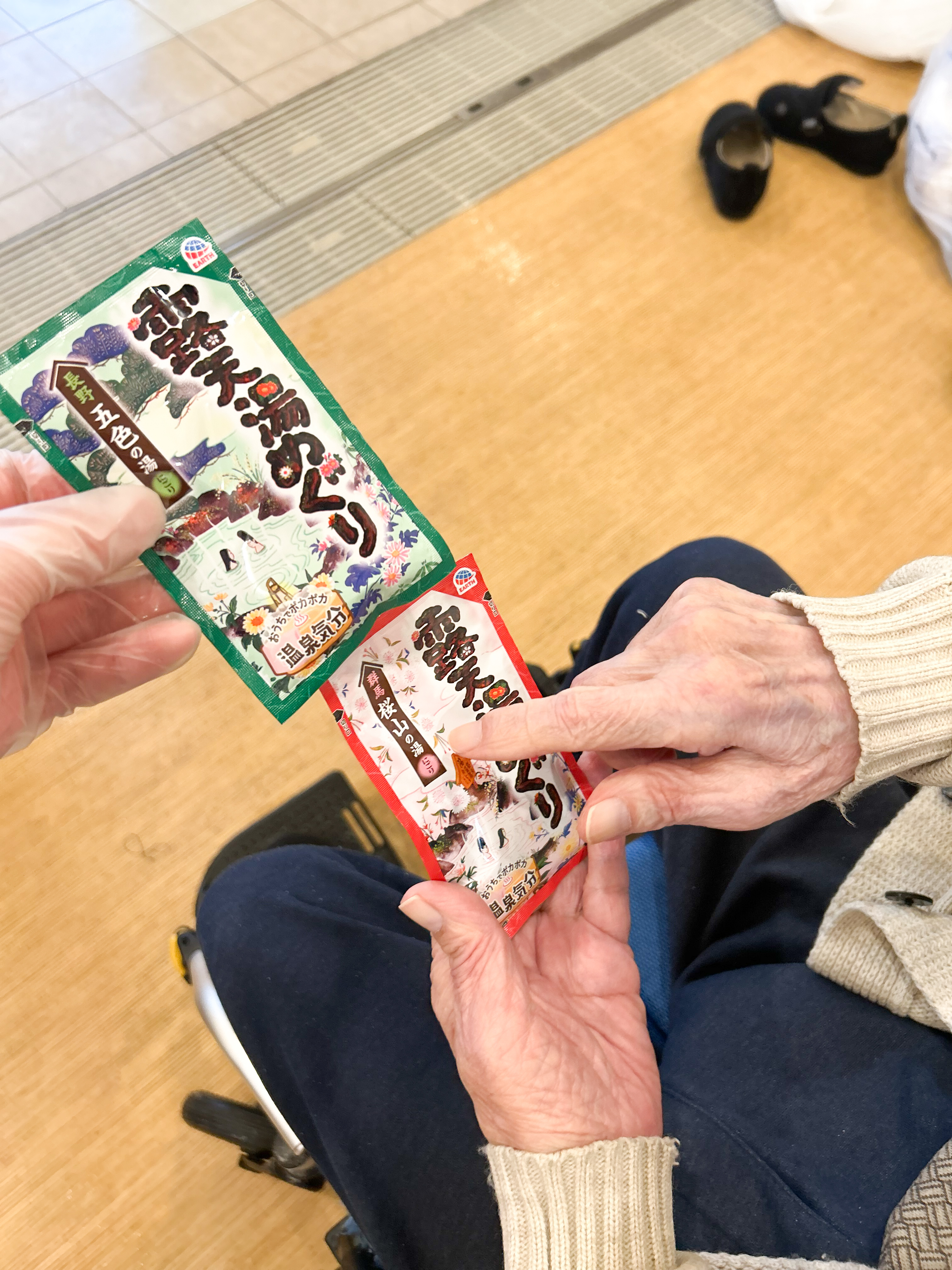 この方が入浴が大好きなので、入浴の声をかけると、「今、お風呂なの?」と仰いながら喜んでいました(^^♪