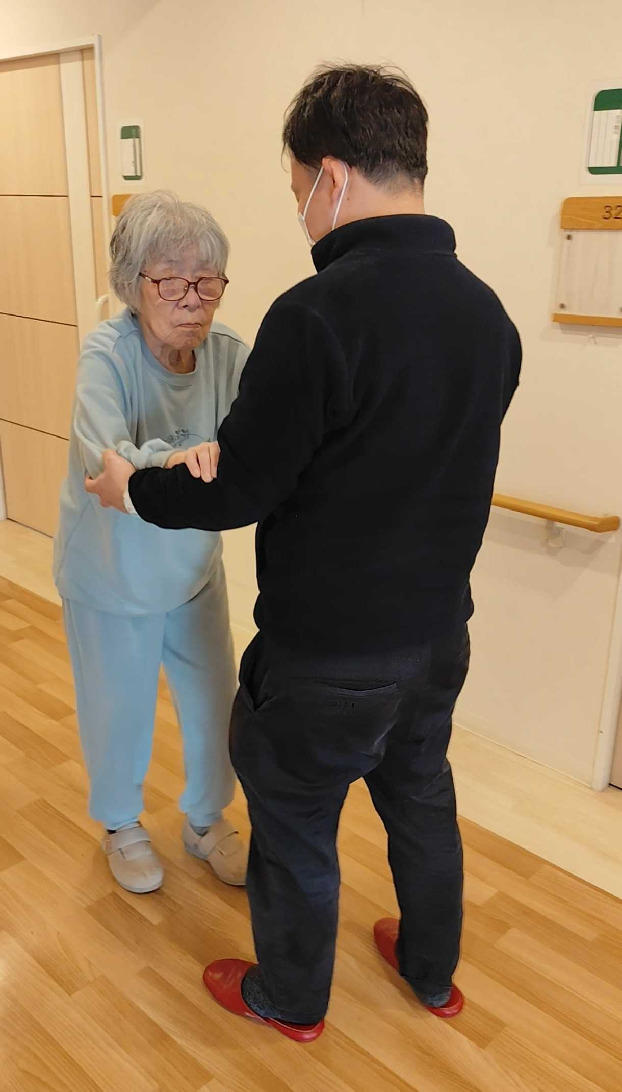 丁寧に支えていただきながら、ゆっくりと体を動かされています。安心した雰囲気の中で、落ち着いて取り組まれていました。