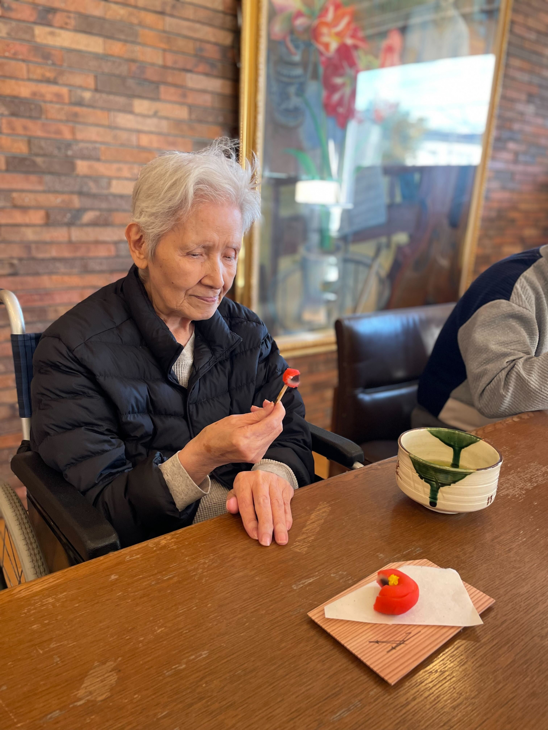 1月のテーマは「和」と題し、和菓子とお抹茶を用意しご利用者様には実際にご自身でお茶を点てていただきました。