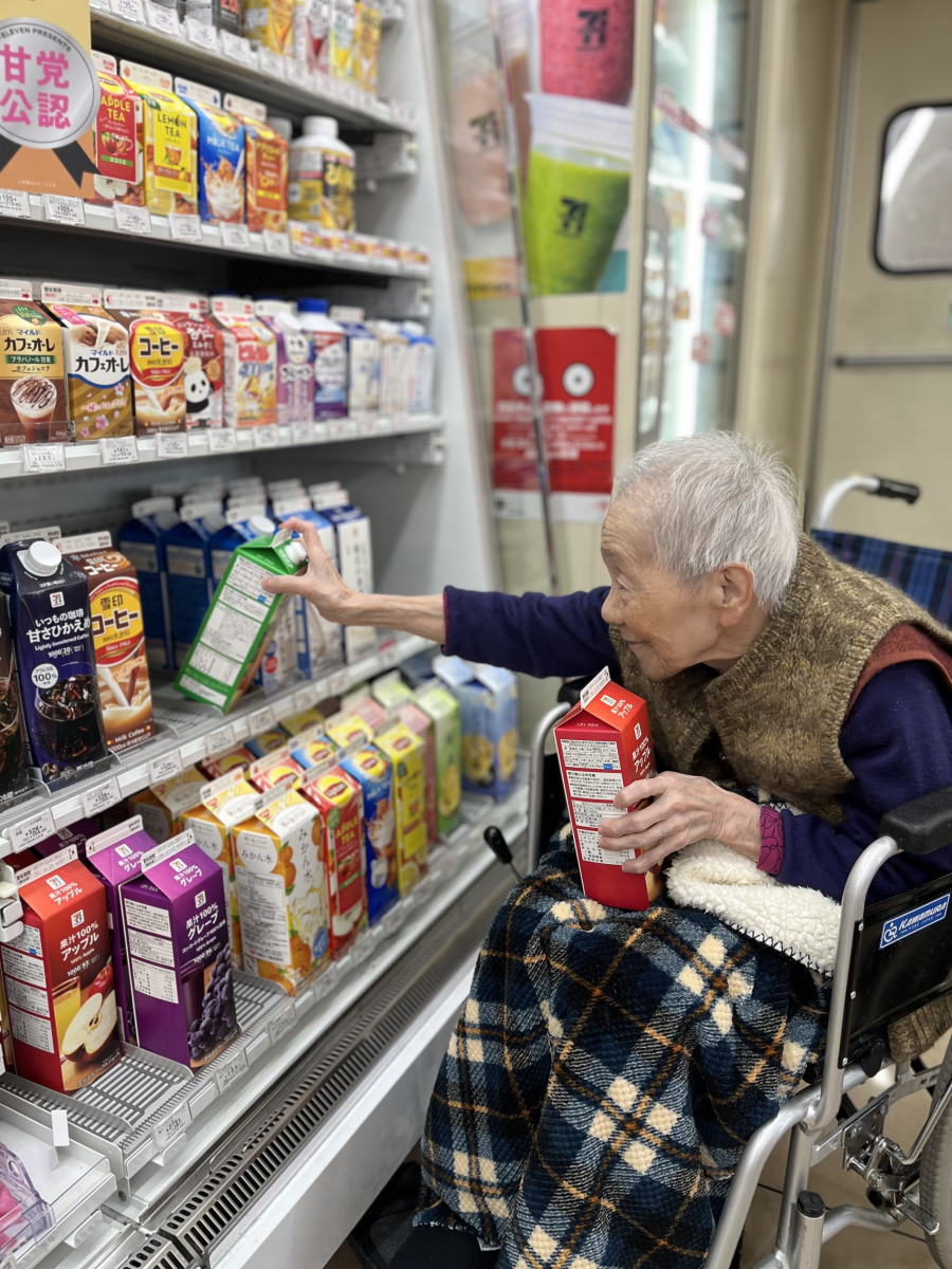 天気が良かったので、一緒に散歩に連れて行きました。ついでに本人の希望によりコンビニにも寄りました(^_-)-☆