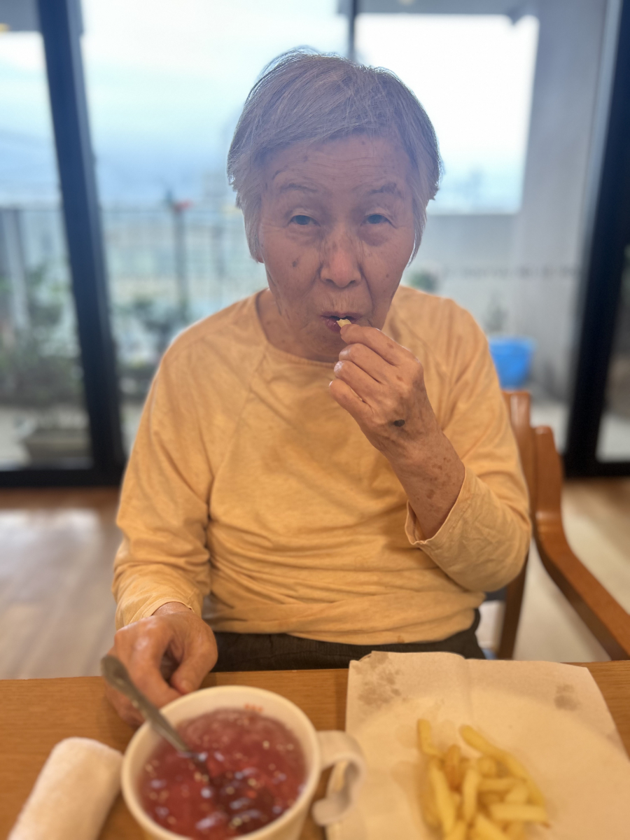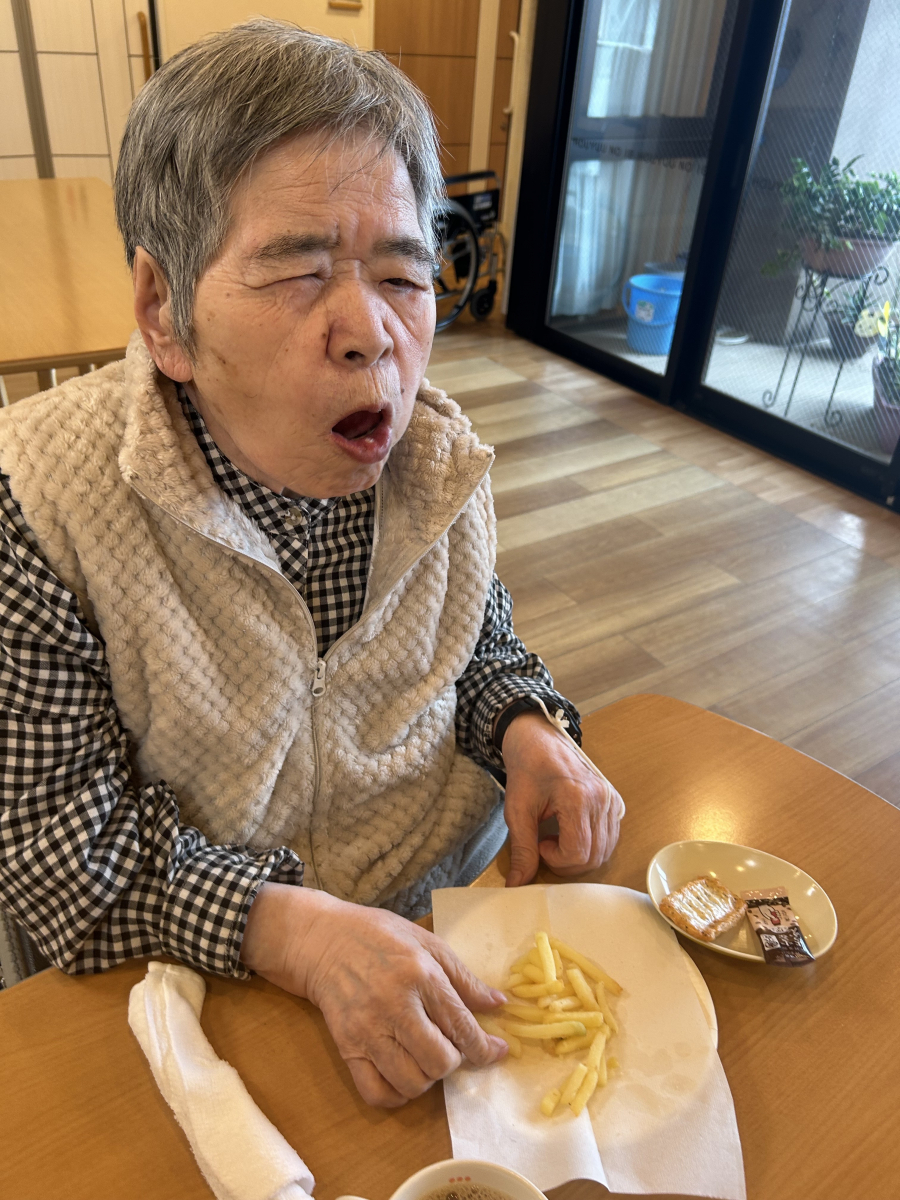 いつもおやつは、おせんべいが多く温かい揚げたてのポテトをお出ししたところ・・・