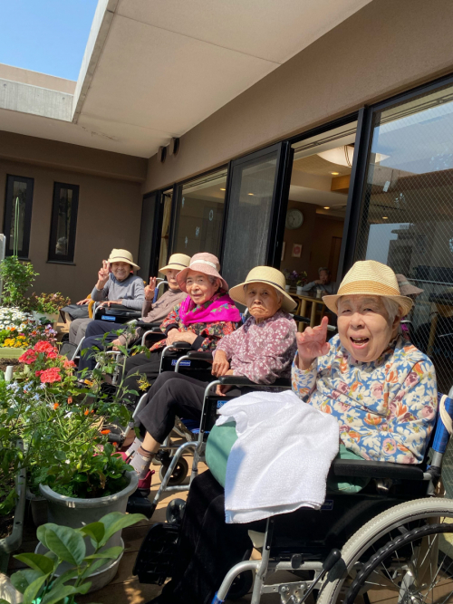 今日 、天気が良かったので、ご利用者様と一緒に施設の周りを散歩しました。
