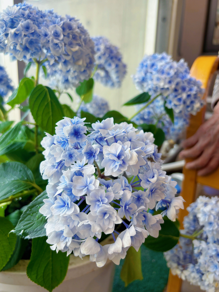 初夏の紫陽花と一緒にリラックス