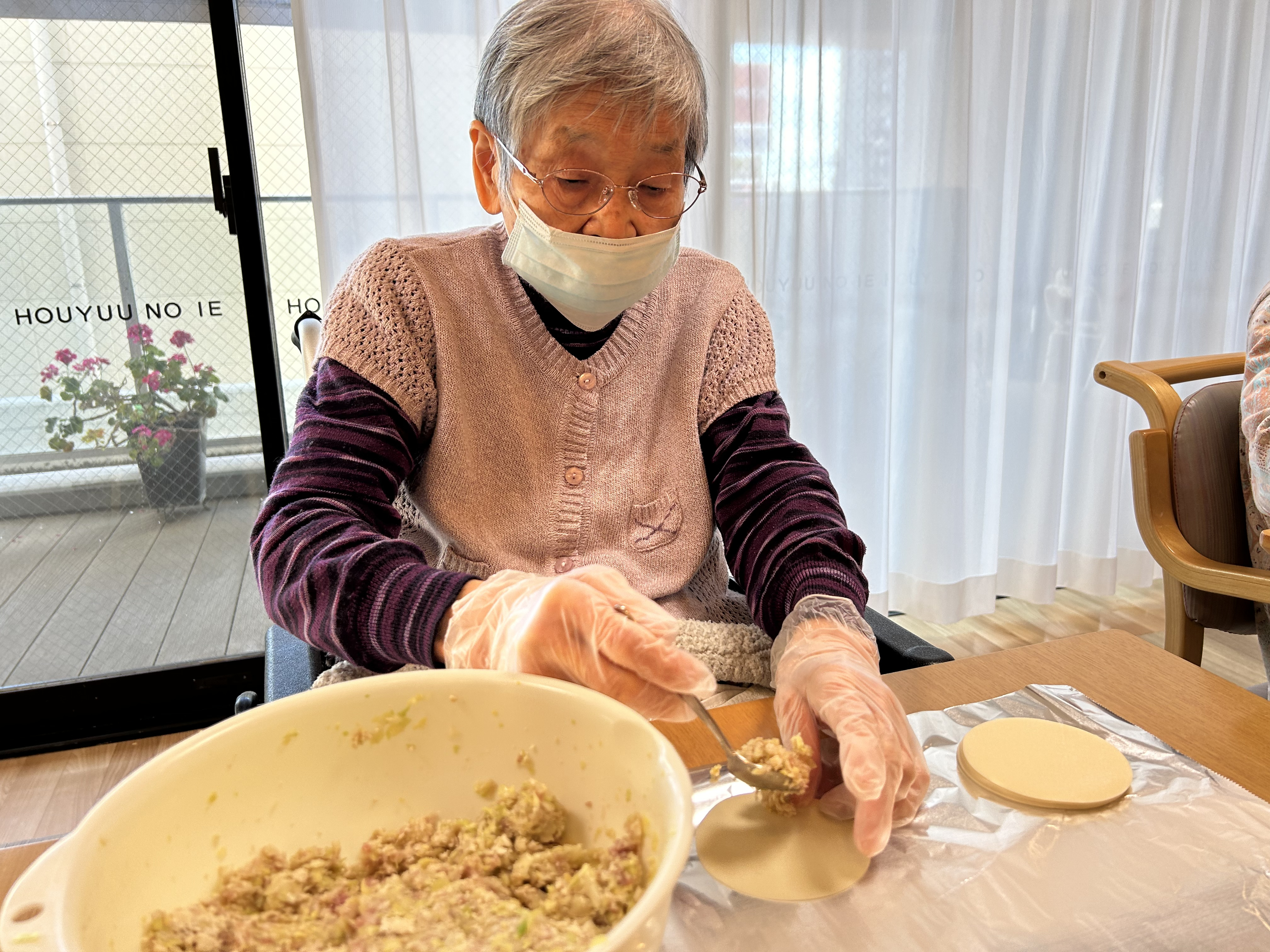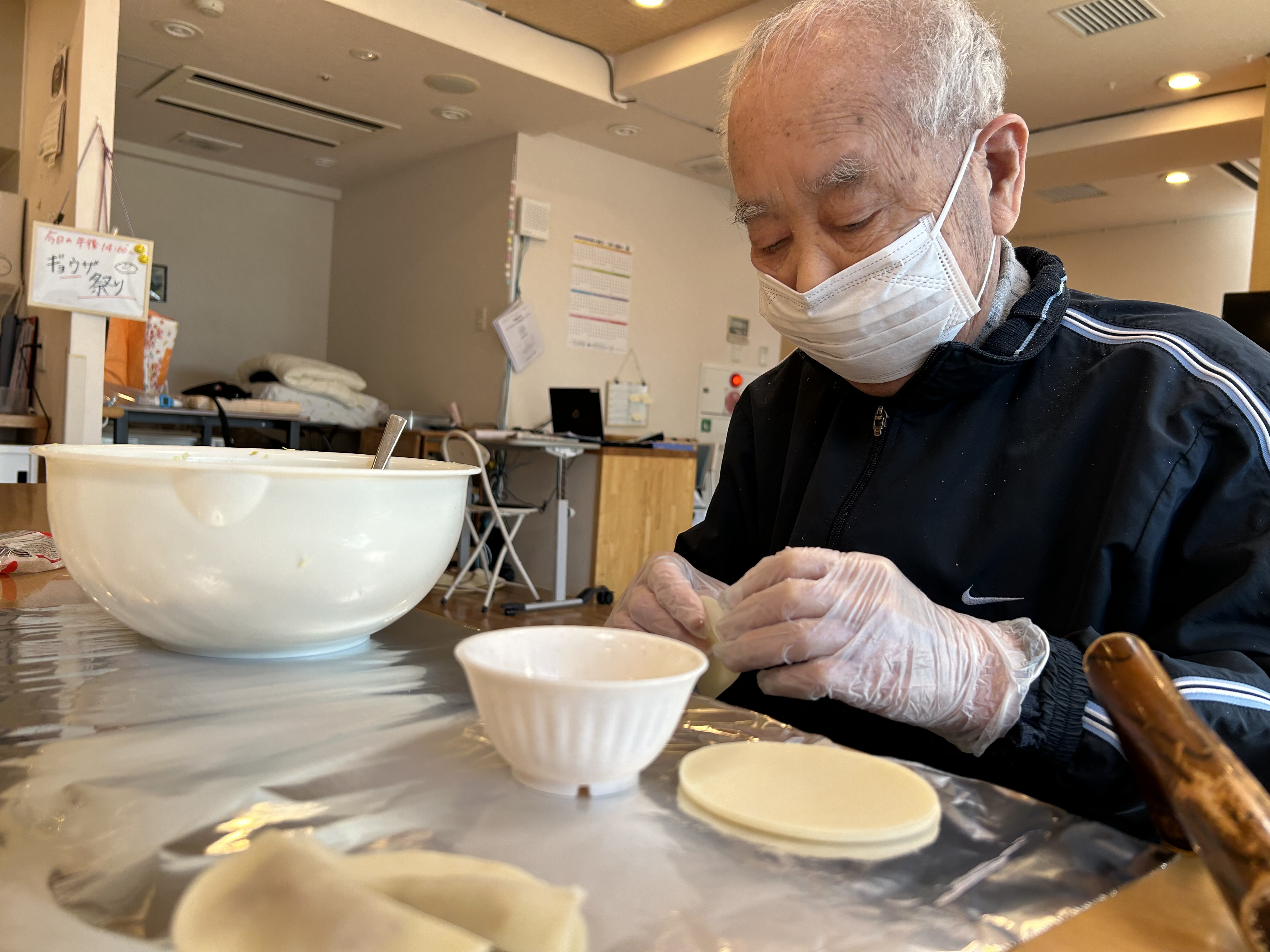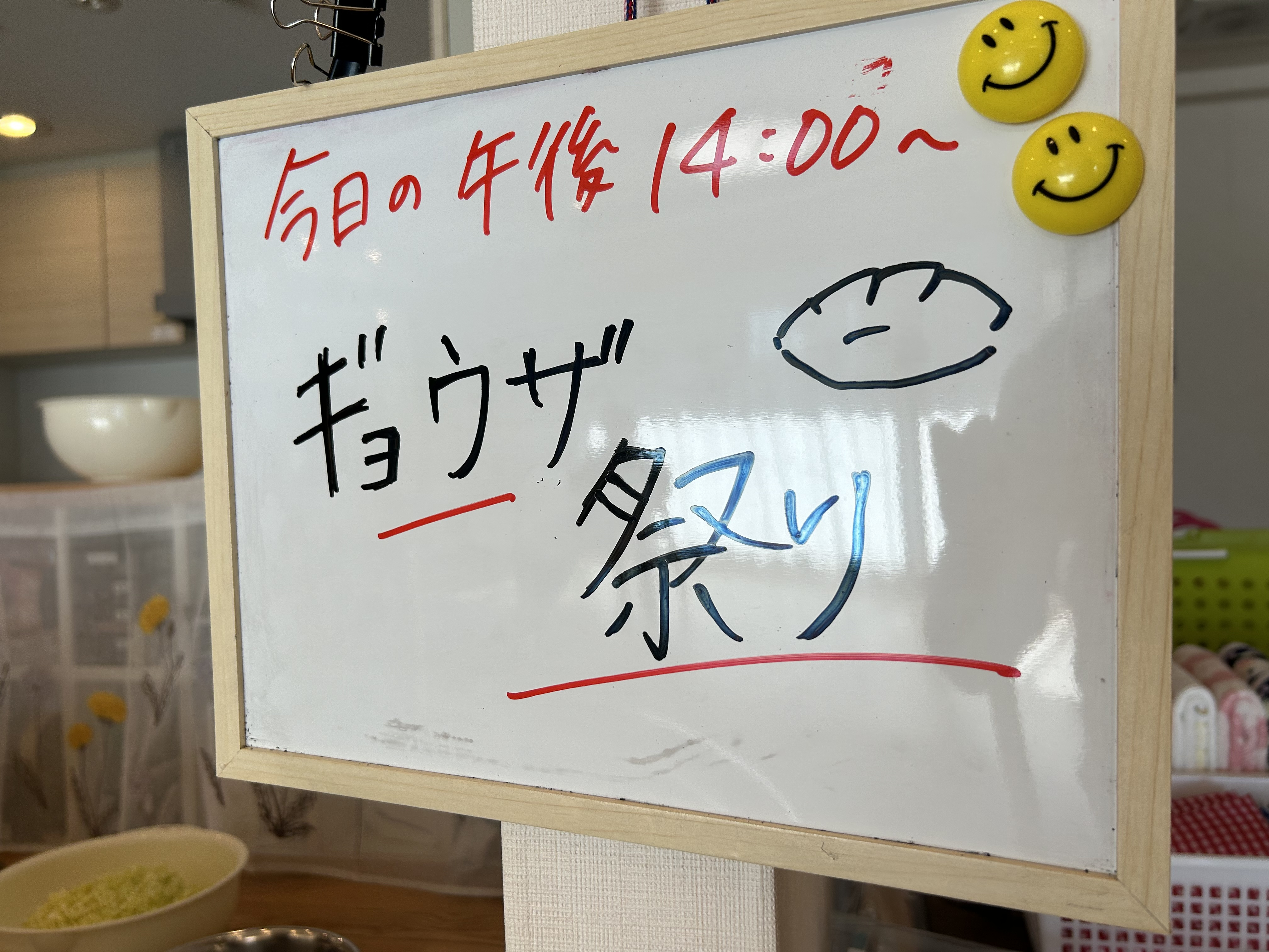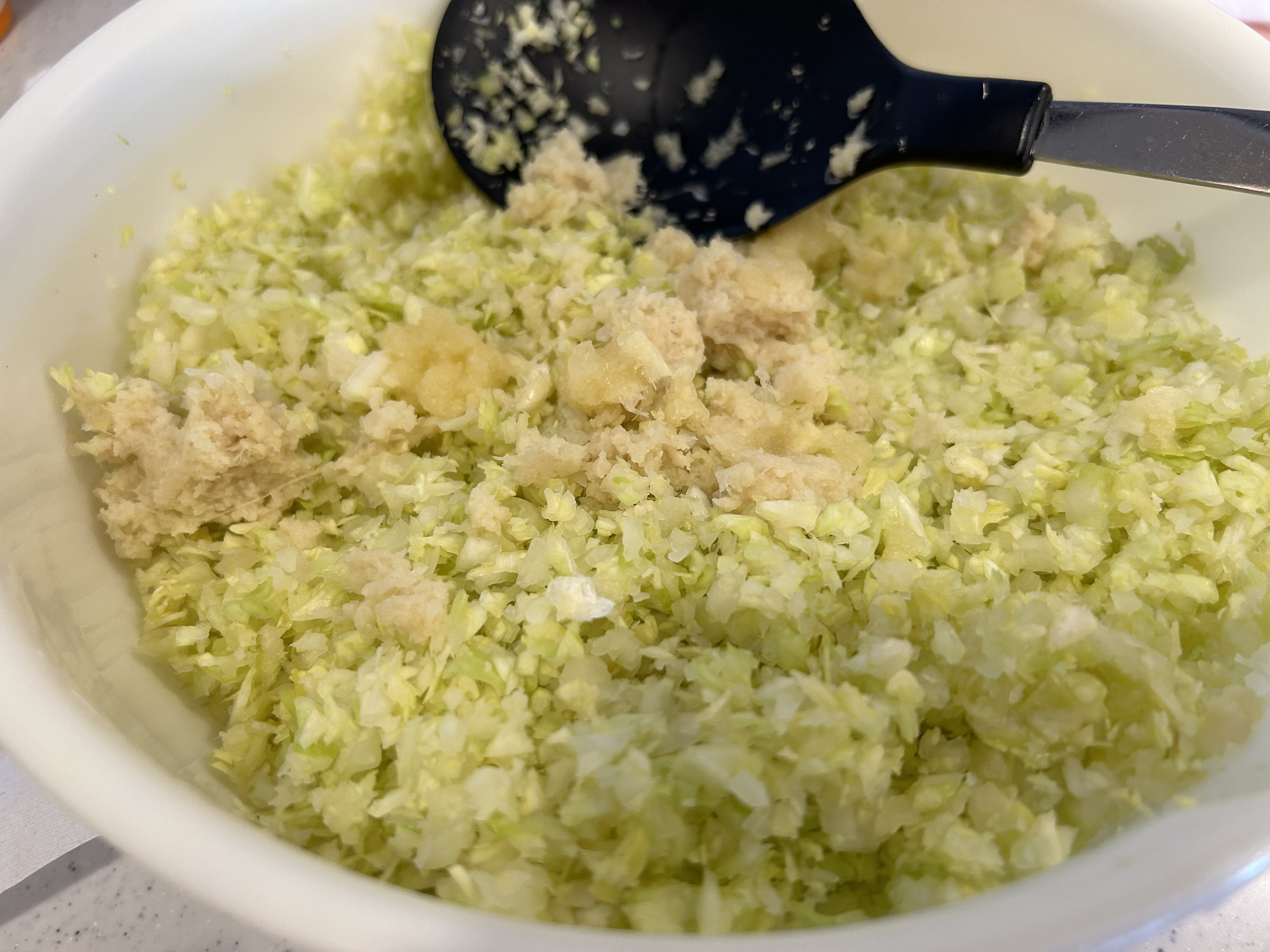 餃子祭りはキャベツを切るところからスタートです!お手伝いをお願いしました