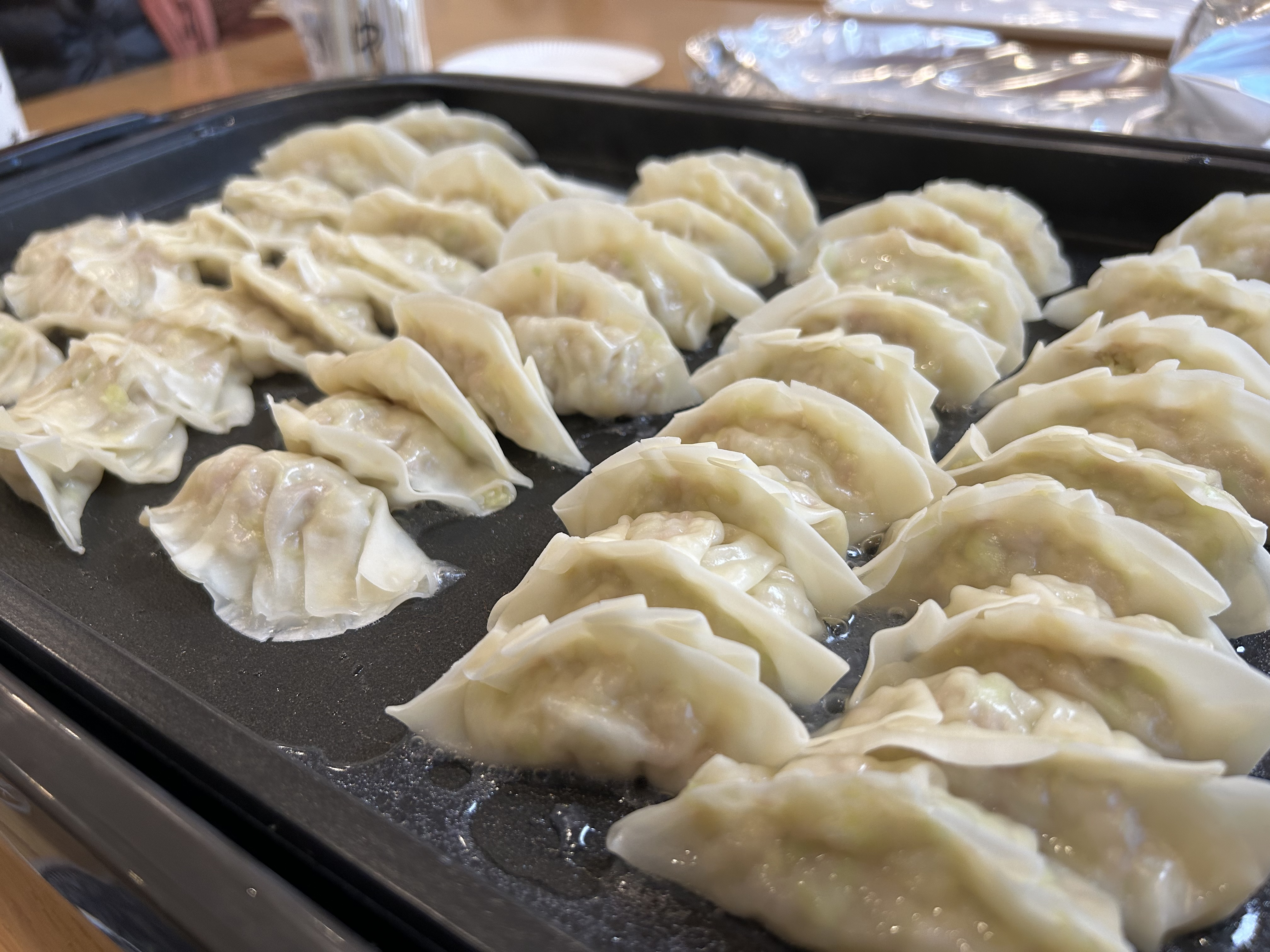 計75個出来ました!プレートに乗りきらずにフライパンとフル稼働です