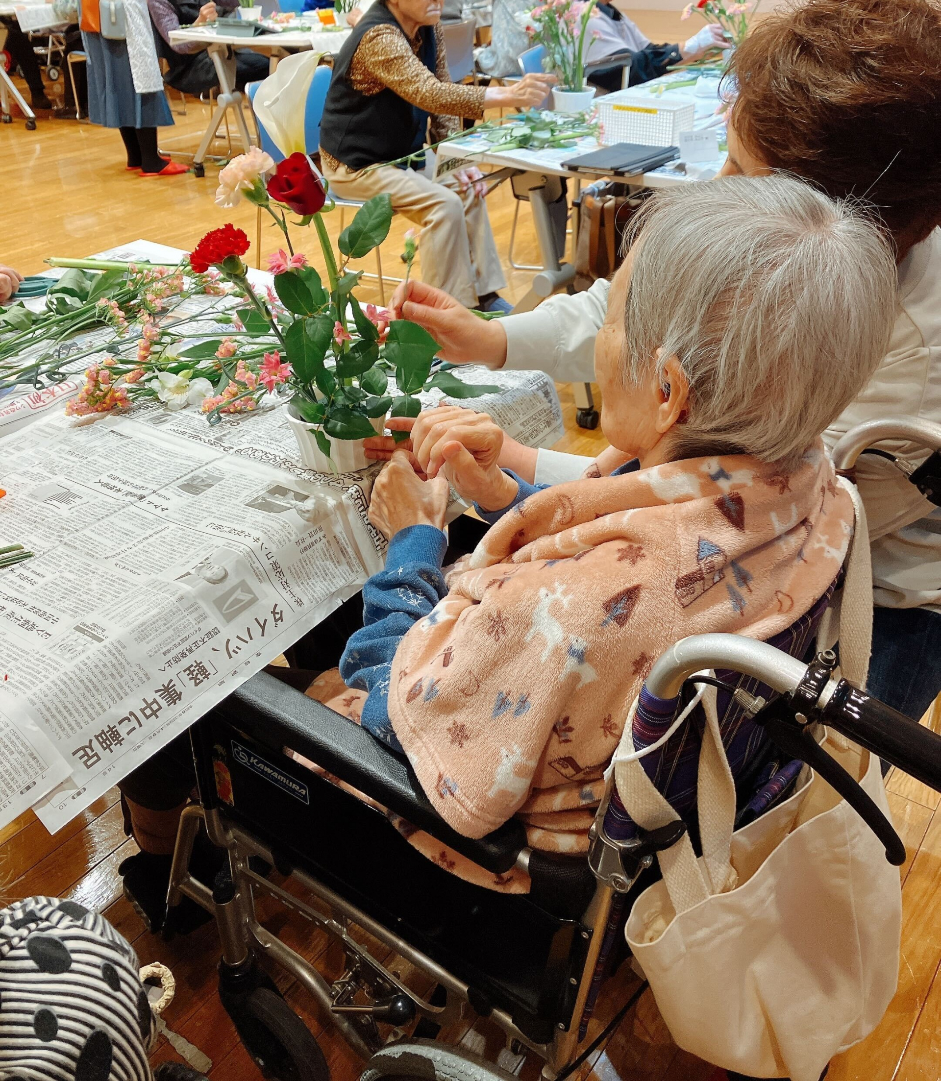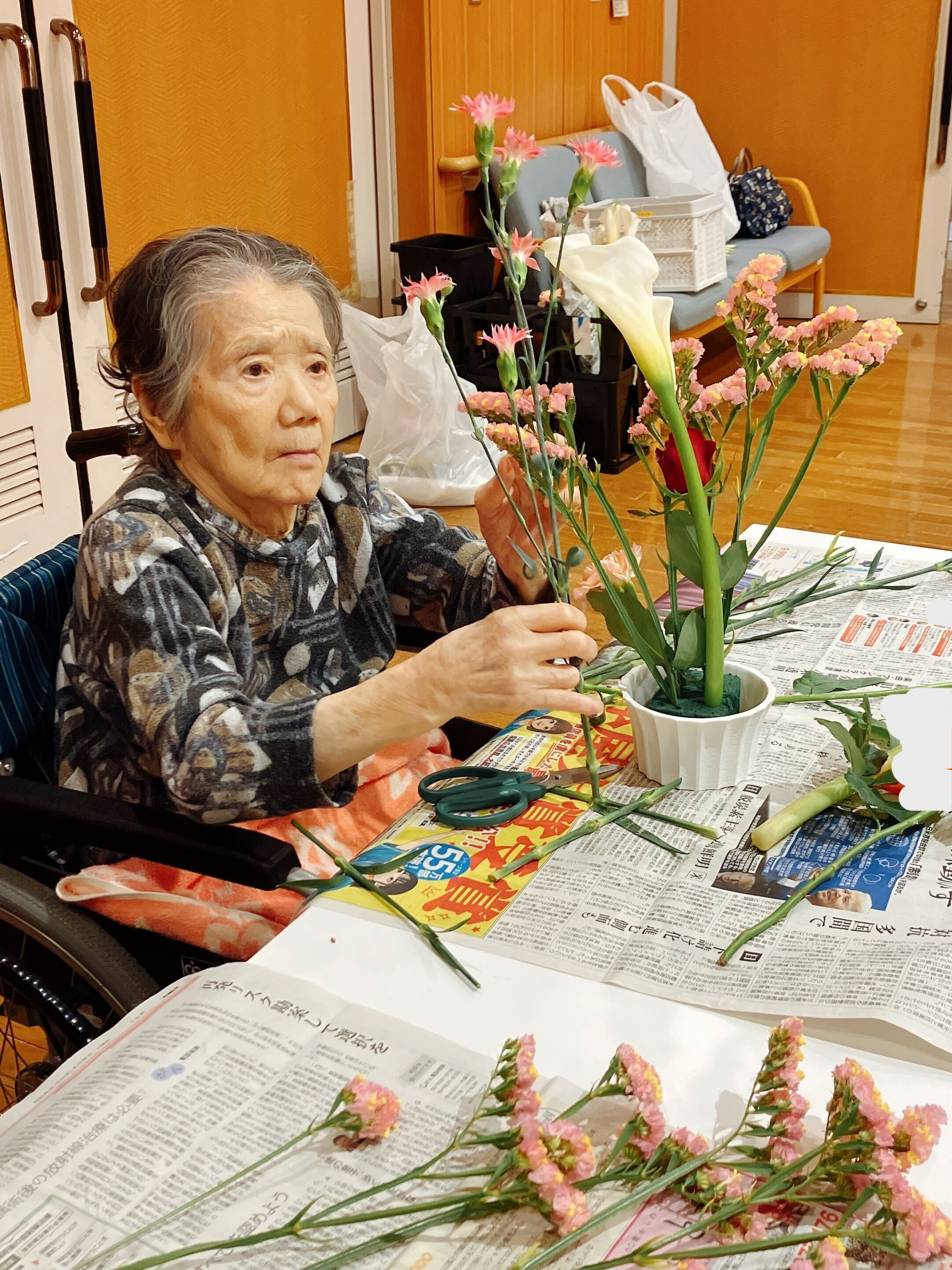 先生ご指導のもと、生け方のコツやお花の種類などを説明していただきながら、楽しくアレンジを行いました。