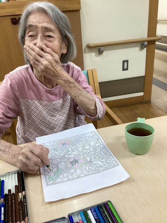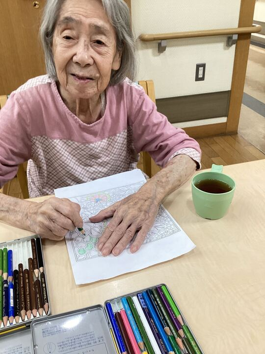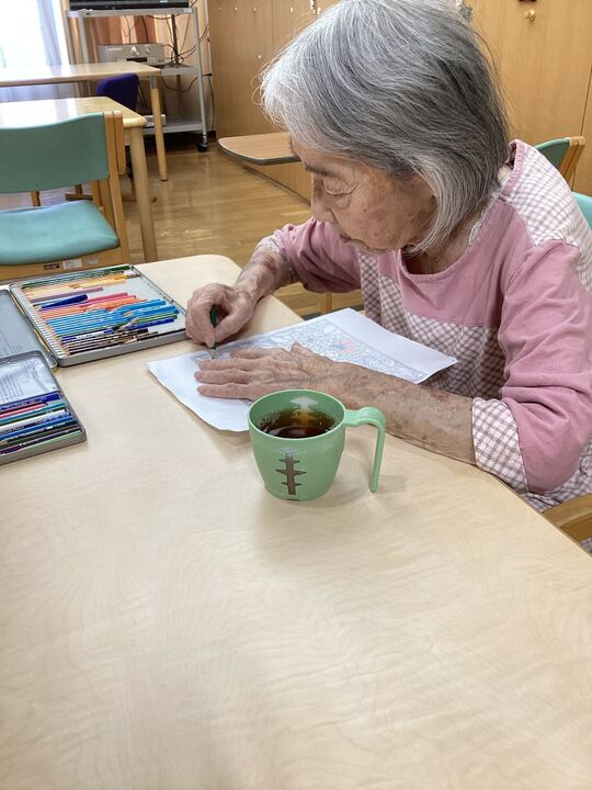 昼食後お席でぼーっとされていた為「塗り絵しませんか」とお声がけすると