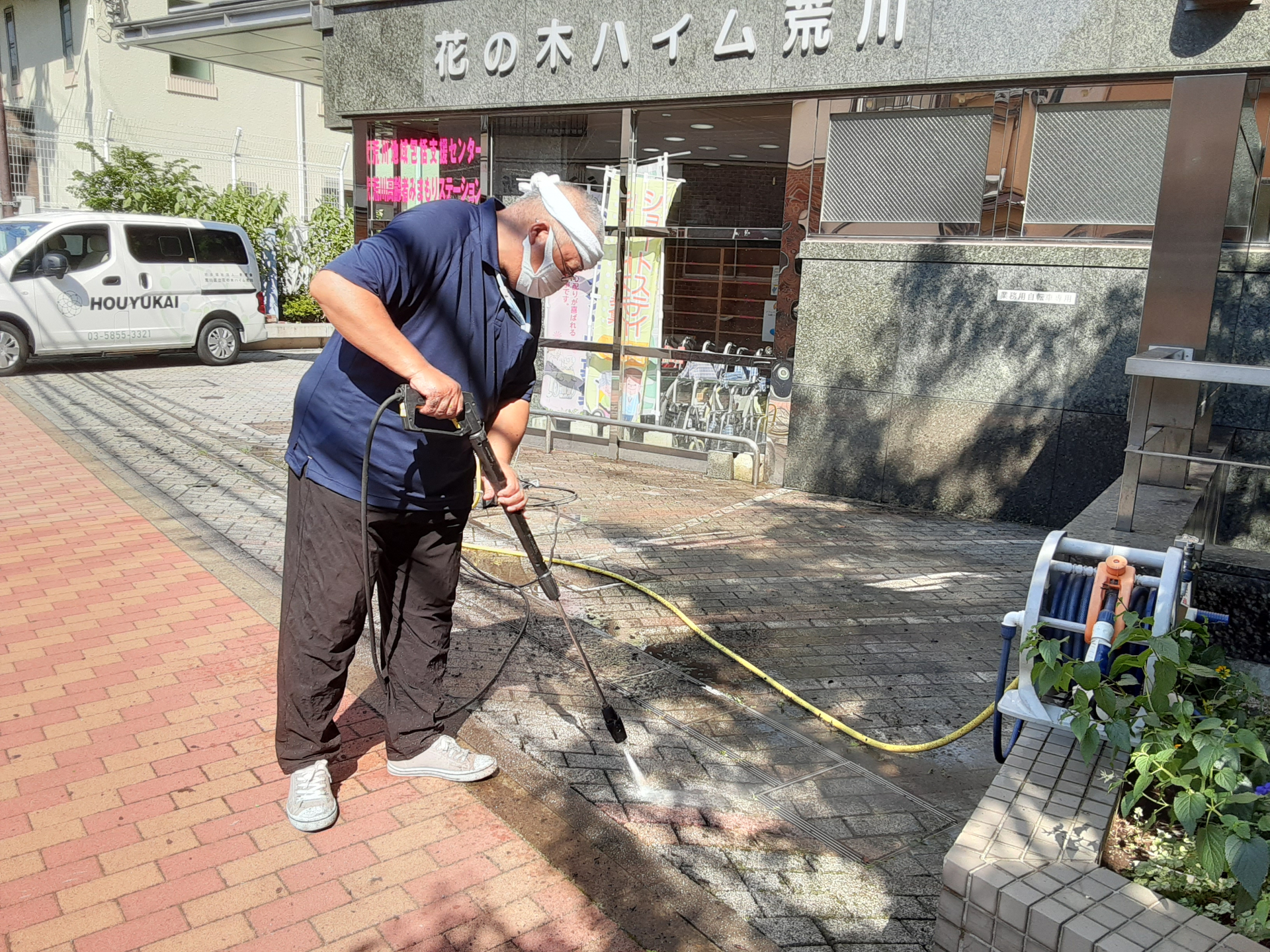 花の木ハイム荒川では、もうすぐ納涼祭があります。施設の環境美化を保ちご来場の皆様をお出迎えしたいと思います!
