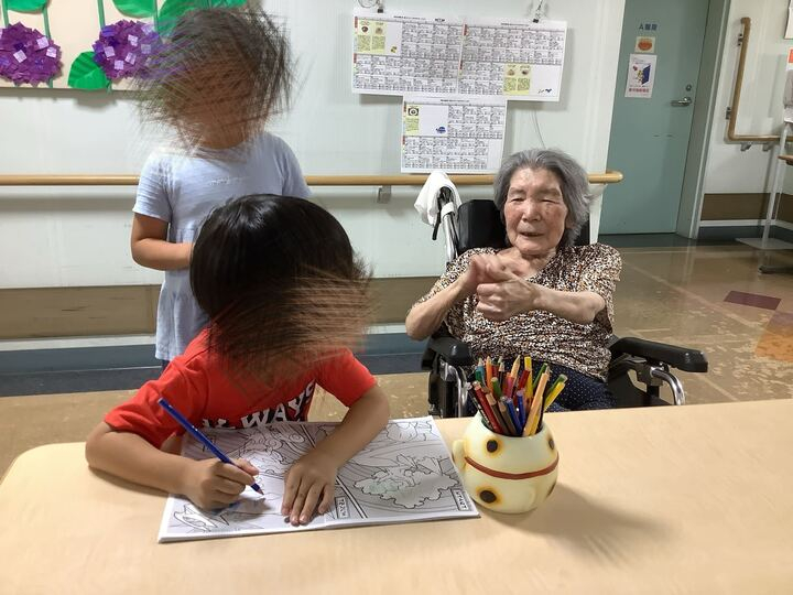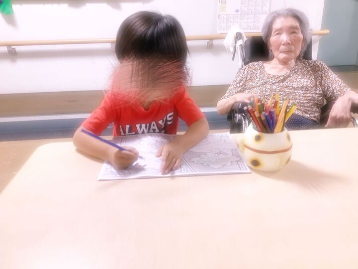 塗り絵している姿を微笑ましいお顔で見ていらっしゃいました。