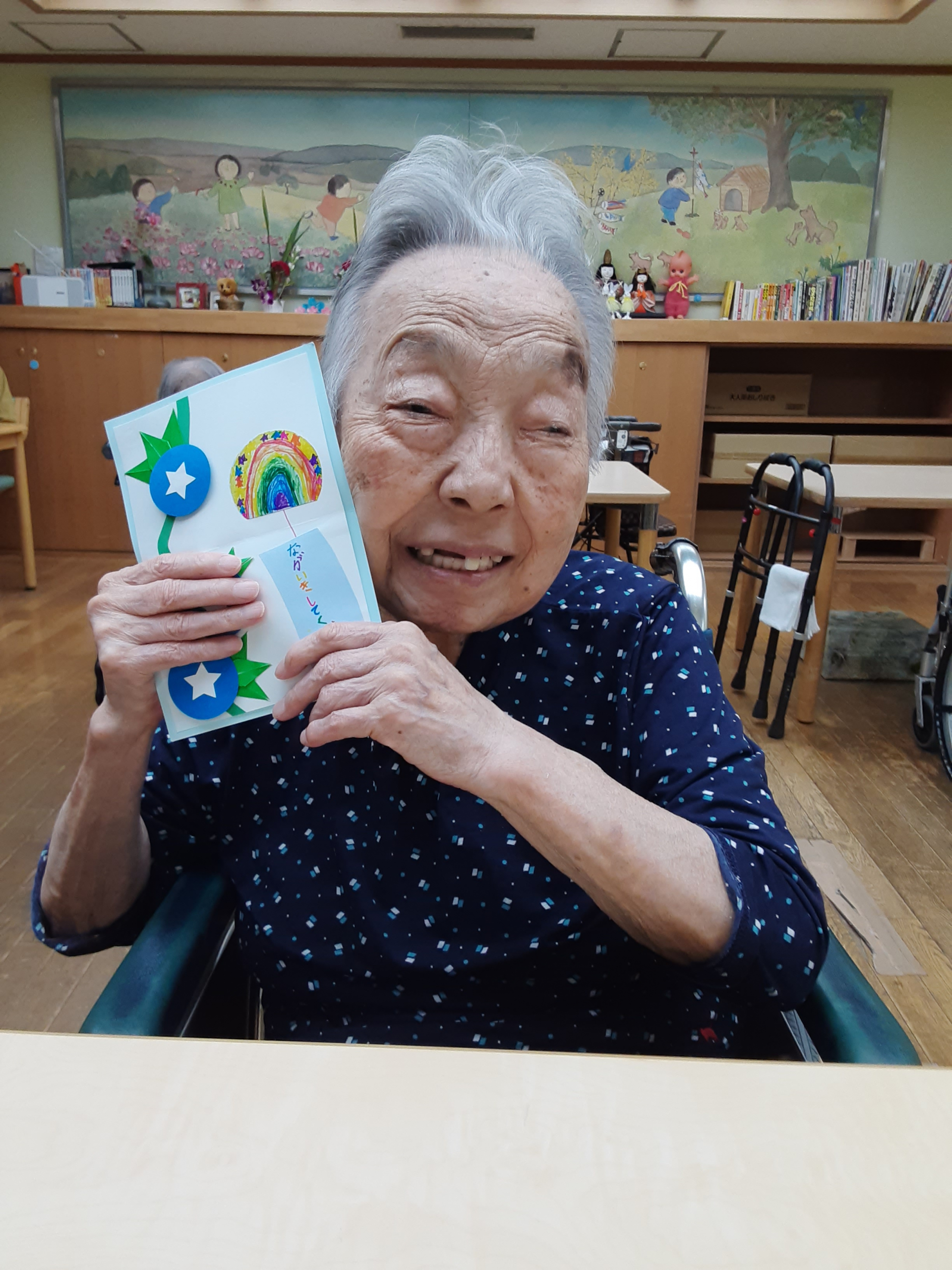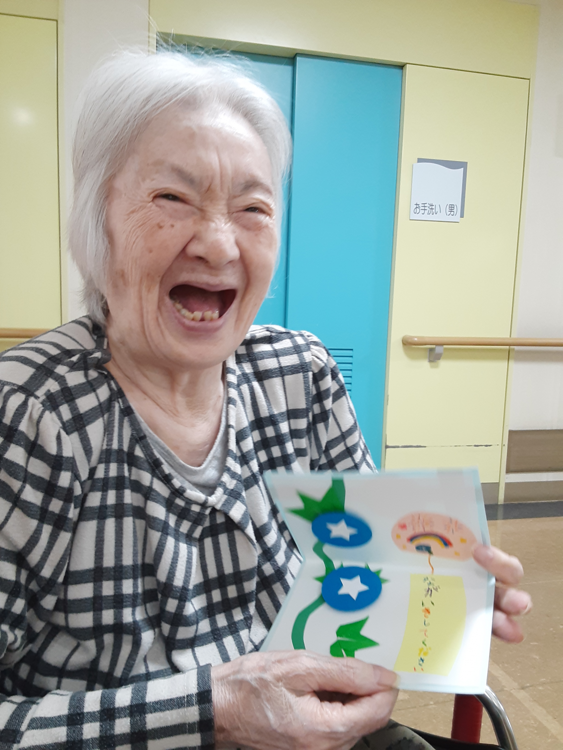 早速ご入居者様のもとへお届けに行くと『わー!すごいわね!手が込んだ作品』『うれしい!うんと長生きしなくちゃね!』など大変喜ばれていました。