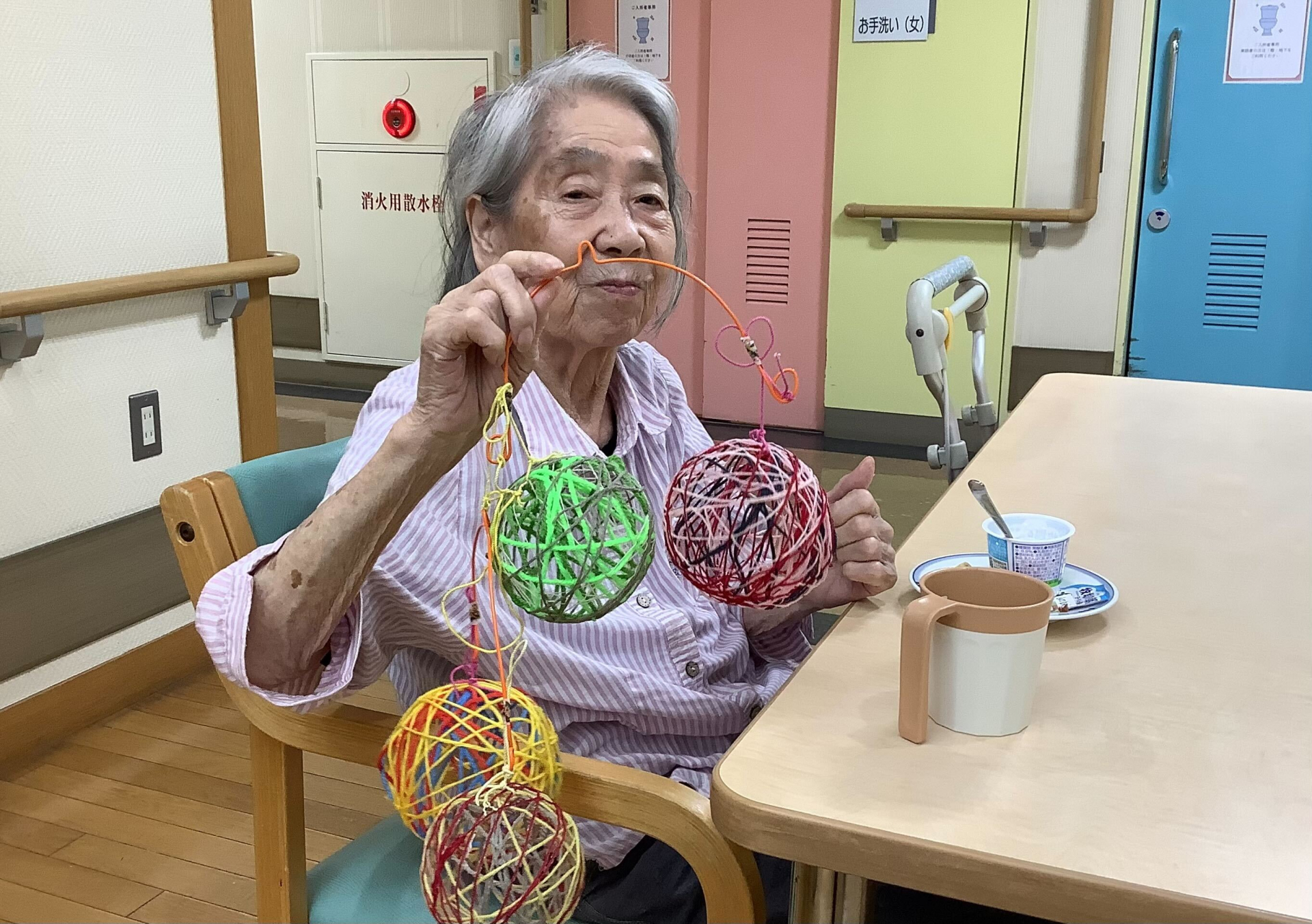 続いてはボール落としのゲームを利用者様と一緒に遊びました!