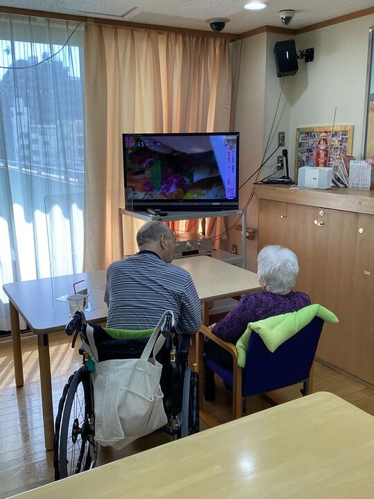 先日、フロアのテレビの前で2人の入居者様がテレビ鑑賞されていました!