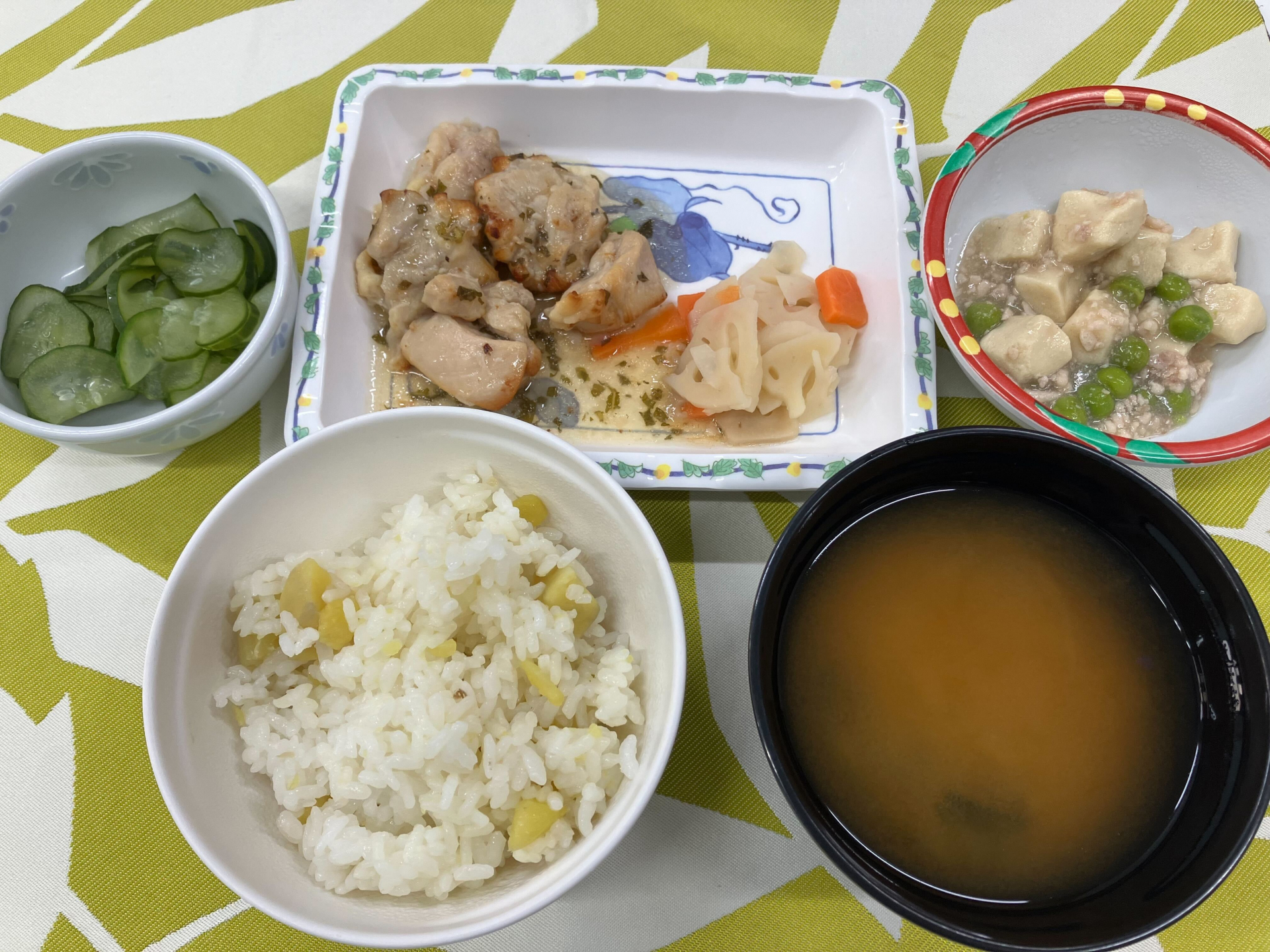 こちらはさつまいもご飯とメインは鶏肉の香味焼きです。
