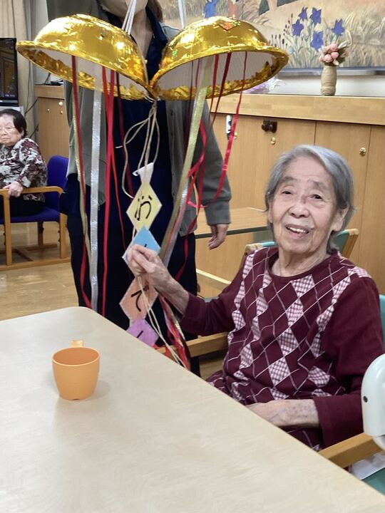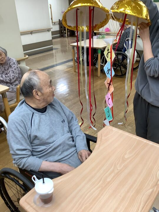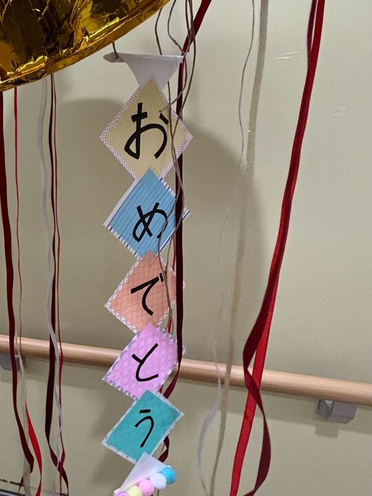 とてもかわいいくす玉を作ることができ、入居者様みなさまに割ってもらいました(^^)
