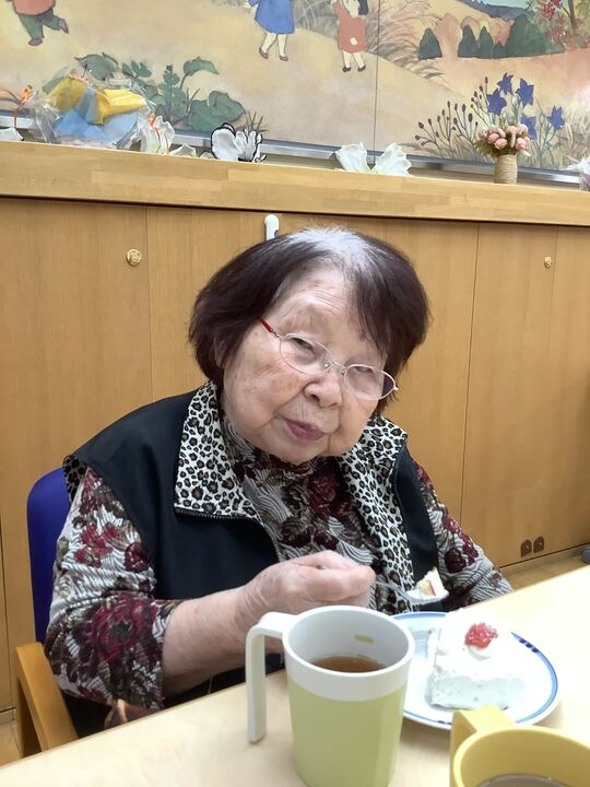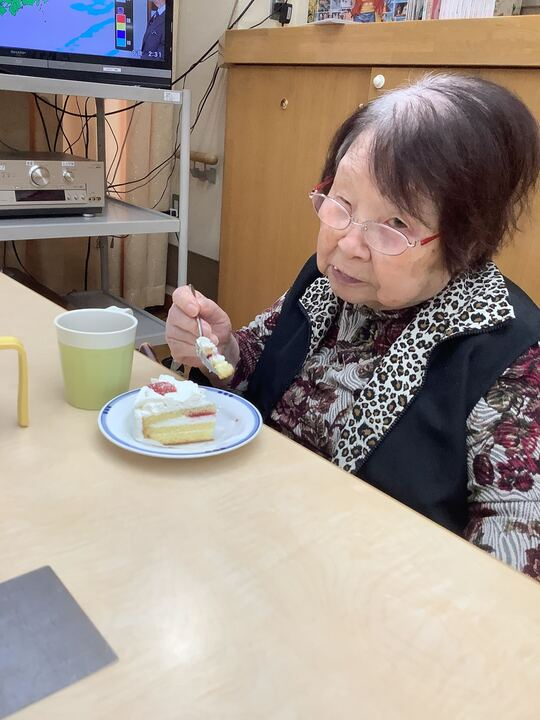 先日ご家族様が持ってきて頂いたケーキをおやつの時間にご提供しました。