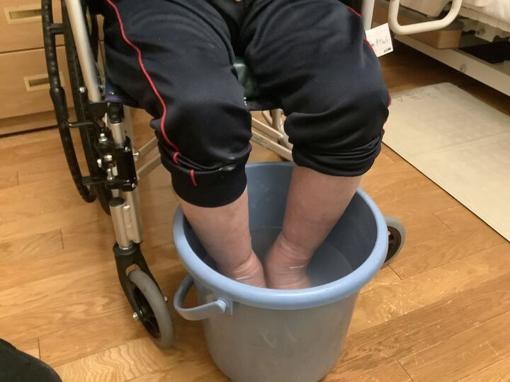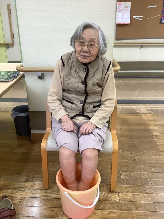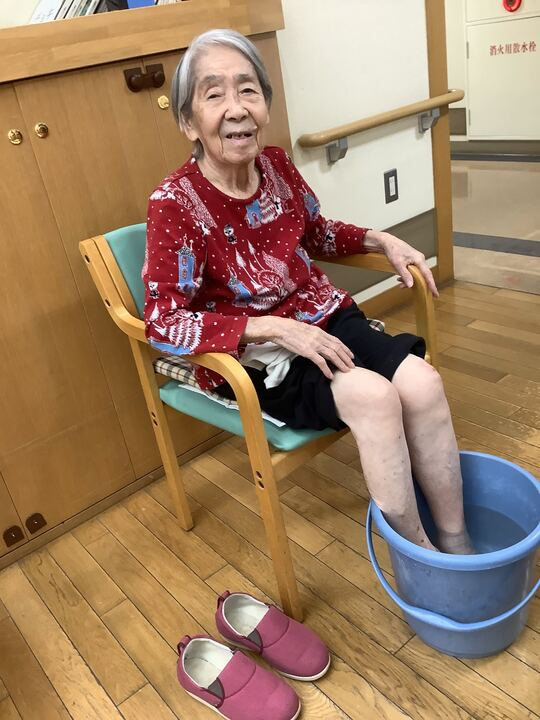 お湯に足を入れた瞬間表情が明るくなり「気持ちがいいわ~」と満面の笑みで声を掛けていただきました。