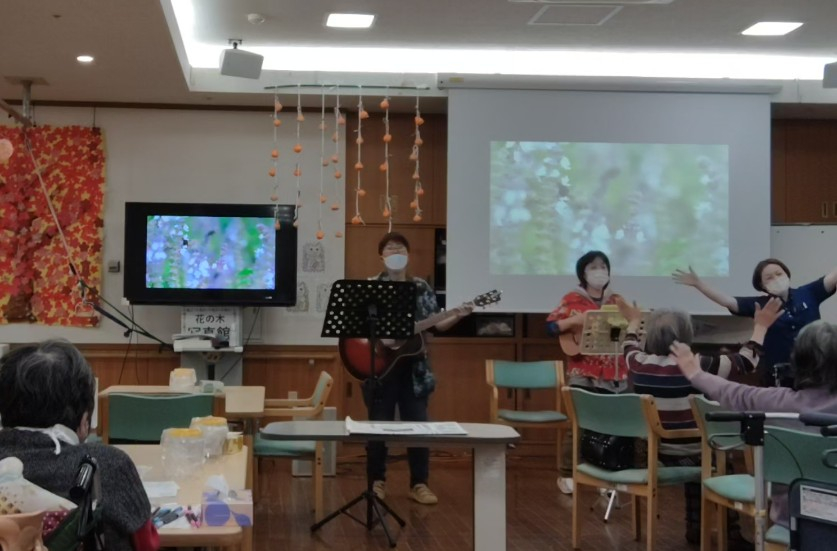 ある日、デイサービス職員から『愛をください!』と可愛らしい依頼が・・・!元気にイエス即答で楽器を持ち、荒川区で有名な(?)花の木ハイム荒川で生まれたフラワーツリーのメンバー登場です!
