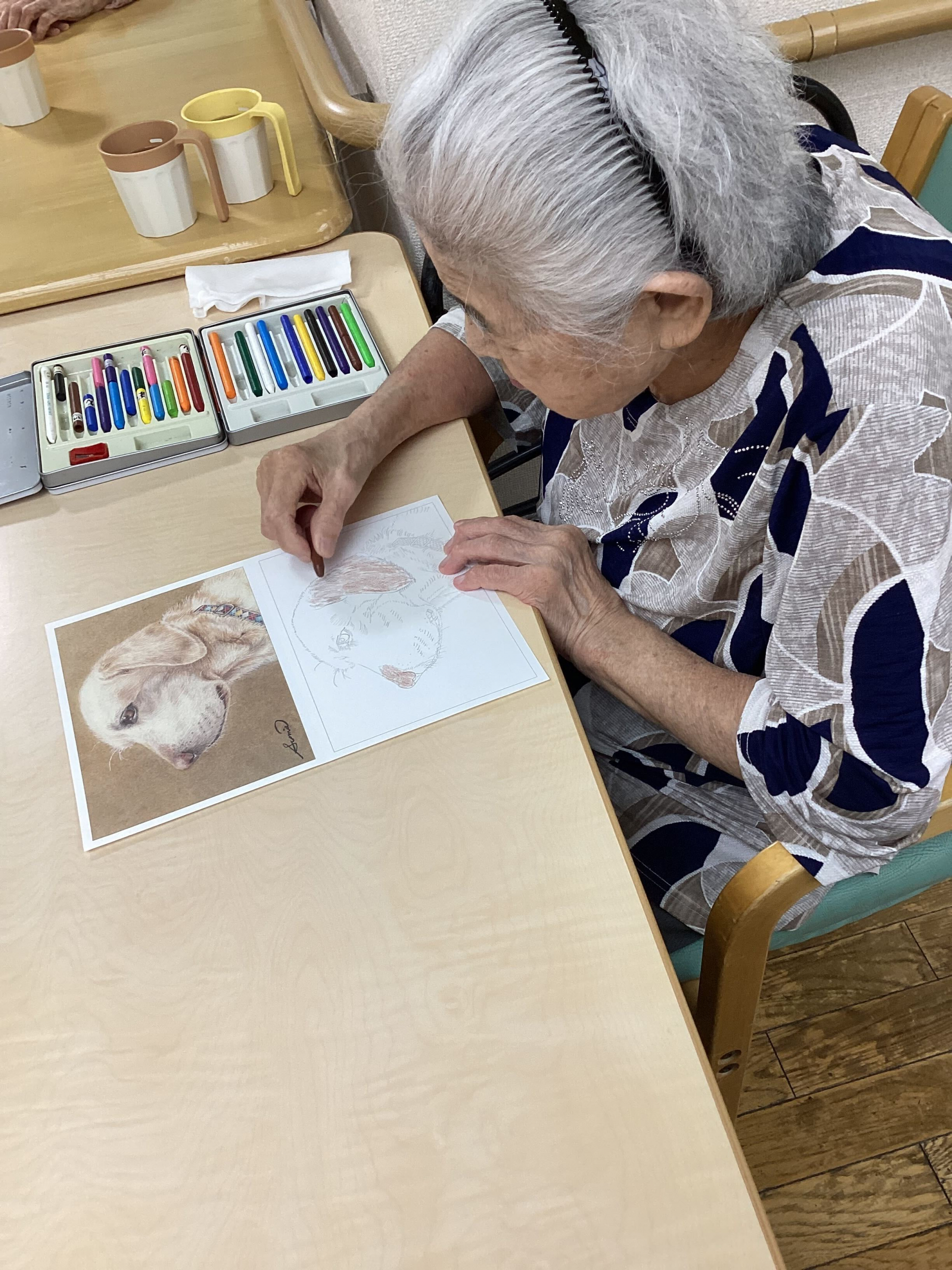 先ほどお昼ご飯の前に塗り絵をしてくださいました🖋