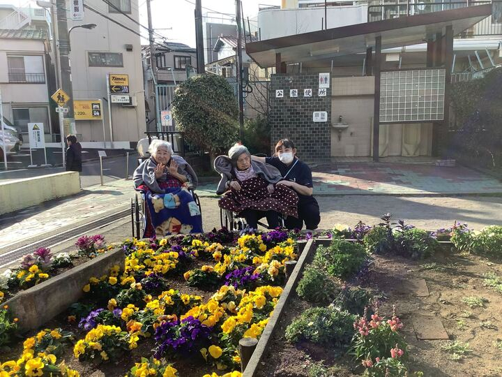 お花が咲いていました。入所者様も「綺麗」と喜ばれていました😊