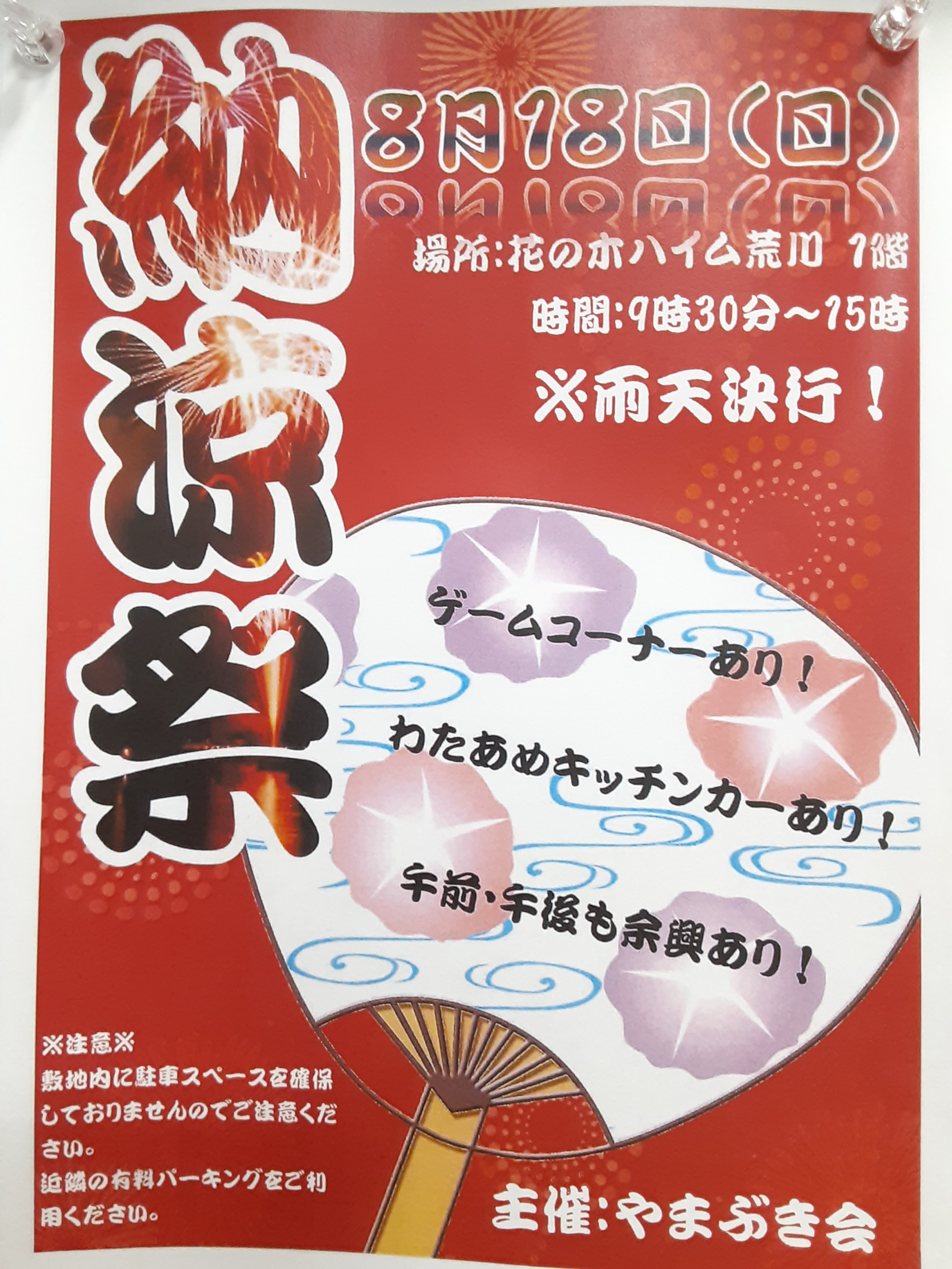 今月の18日(日)9:30から納涼祭を開催いたします!