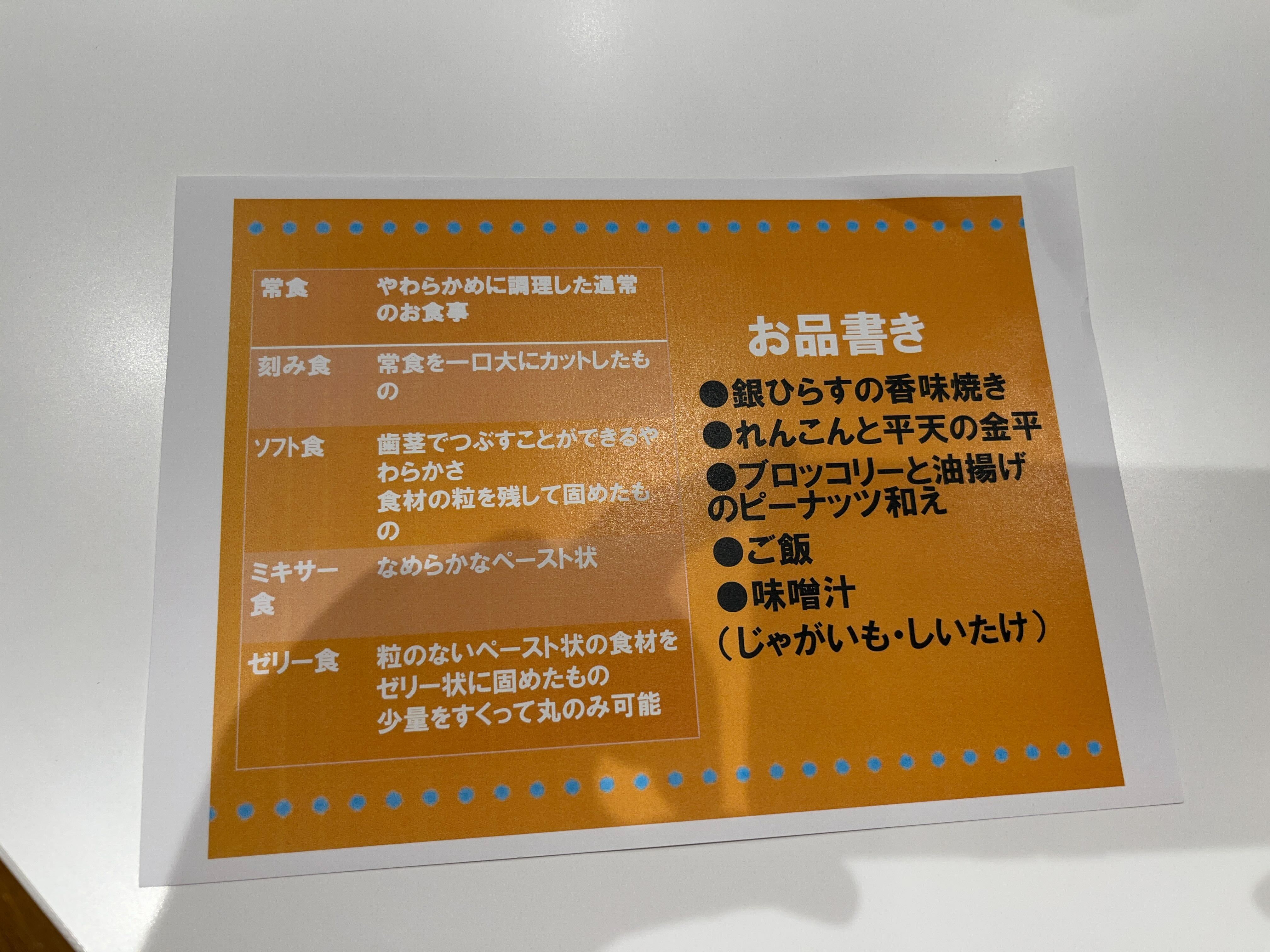 管理栄養士より食形態などの説明をさせていただきました。
