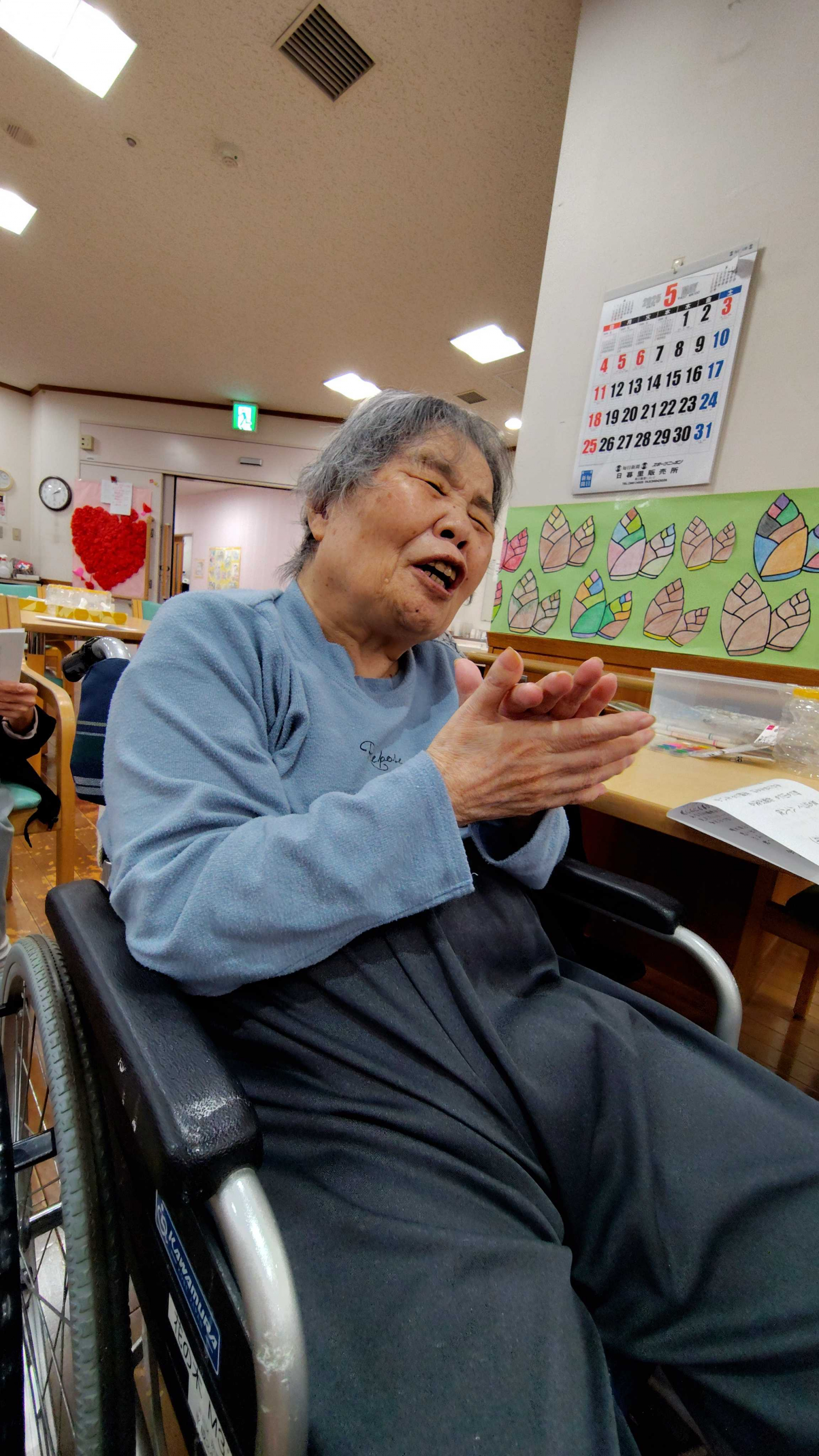 沖縄三線の音楽に合わせて「島唄」が始まると「知ってる知ってる!」と歌われる方がたくさんいらっしゃいました!沖縄の唄だけでなく、唱歌なども。5月という事でこいのぼりを歌いました。