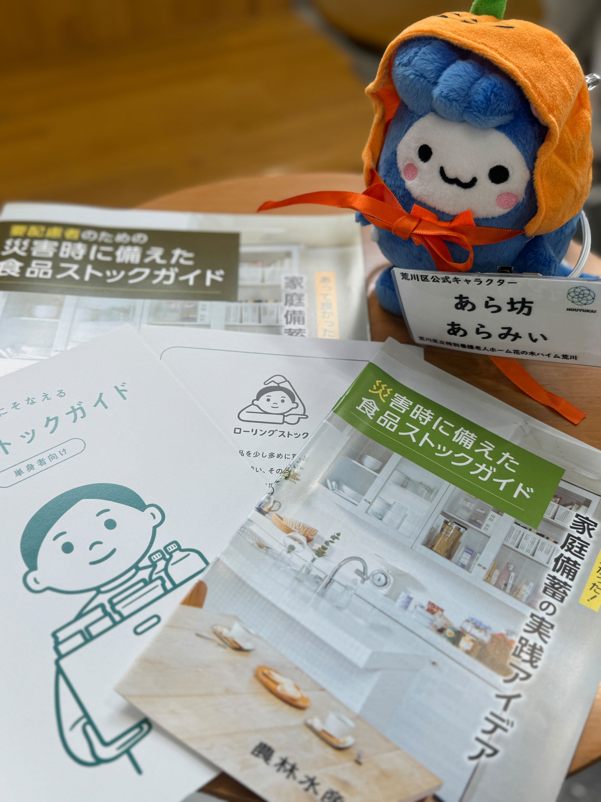 職員間でもパンフレットをもとに、非常時の食料備蓄や栄養バランスについて改めて話し合う機会となりました。