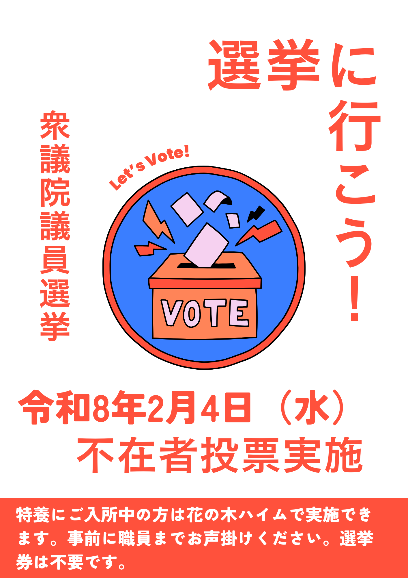 花の木ハイムでは、2月4日に衆議院議員選挙の不在者投票を実施いたします。