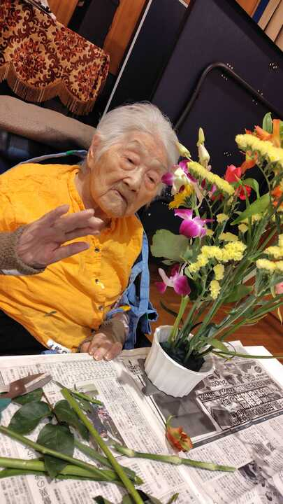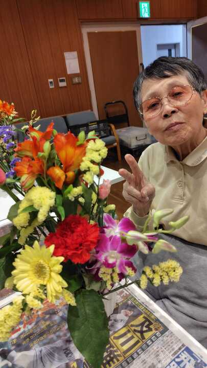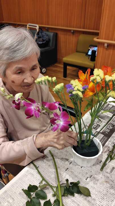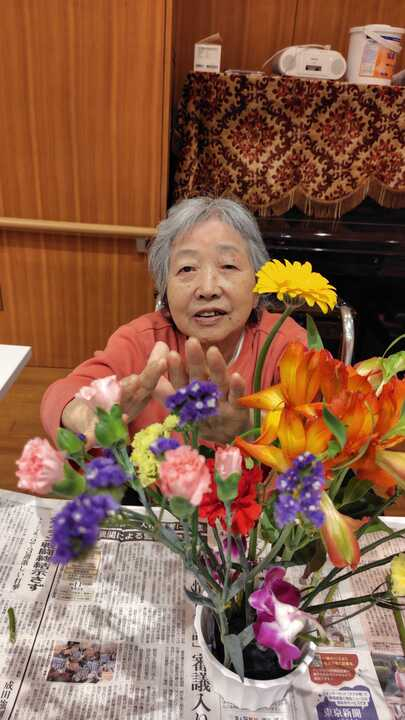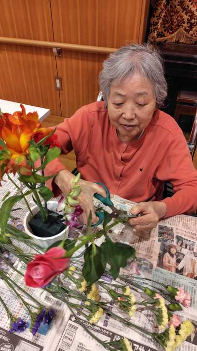以前からずっと楽しみにされていて「こういう華やかなことが大好きなの!」と話されるご利用者様、次々と花を活ける姿がかっこいいです!